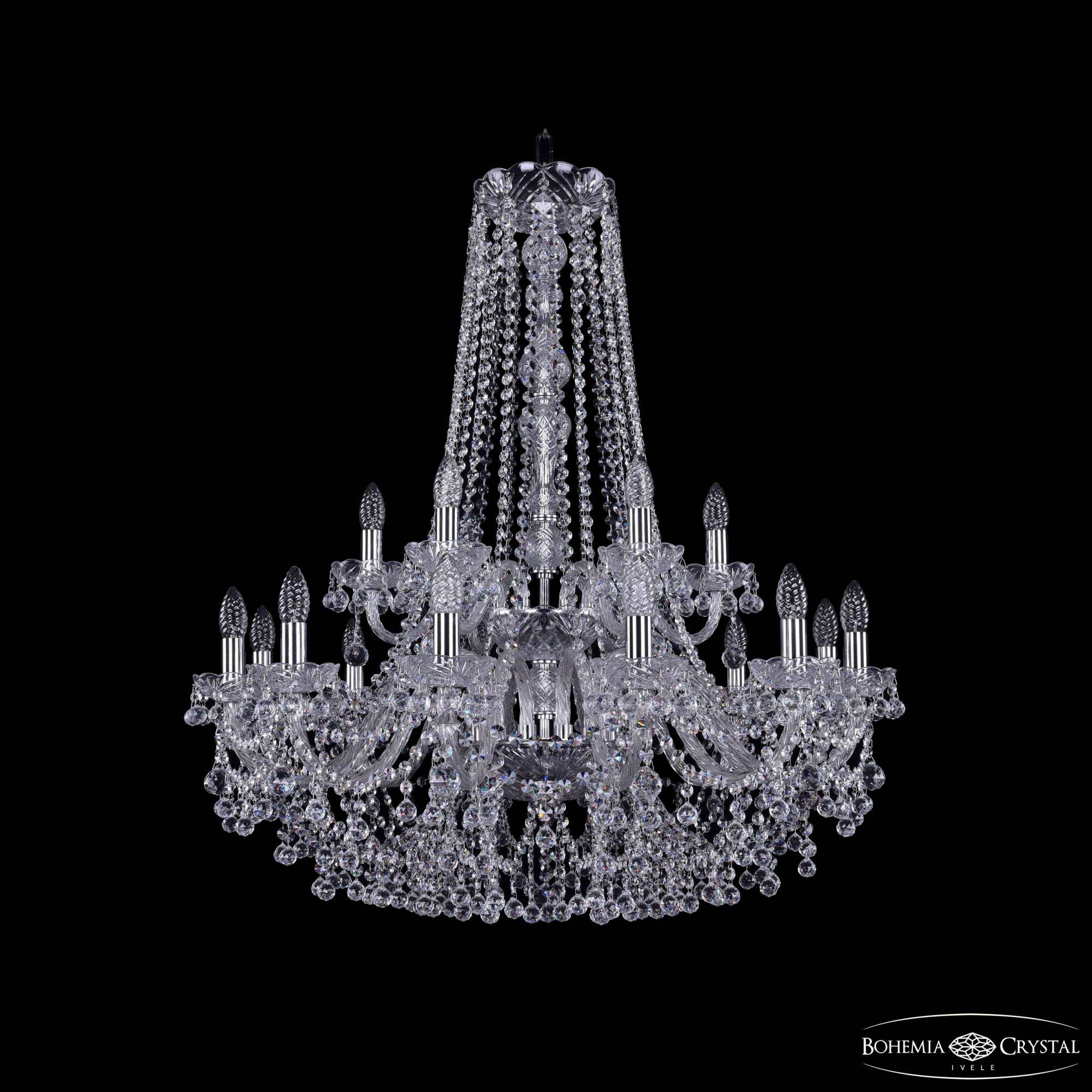 Большая хрустальная люстра Bohemia IVELE Crystal 1409/12+6/300/h-94/2d Ni