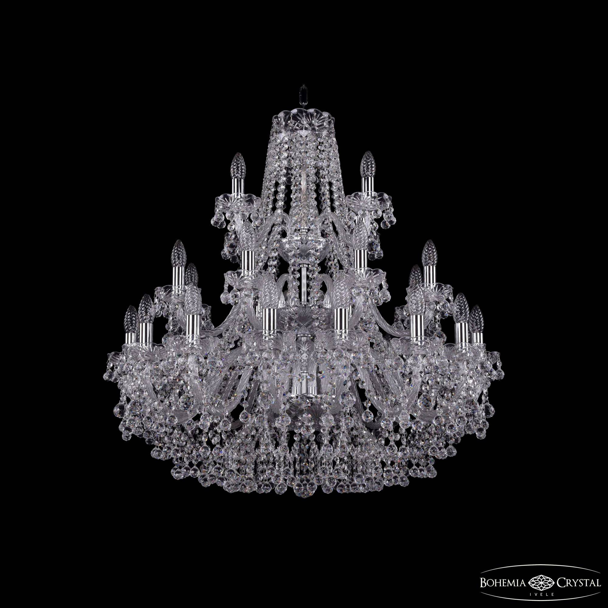 Большая хрустальная люстра Bohemia IVELE Crystal 1409/16+8+4/300/3d Ni