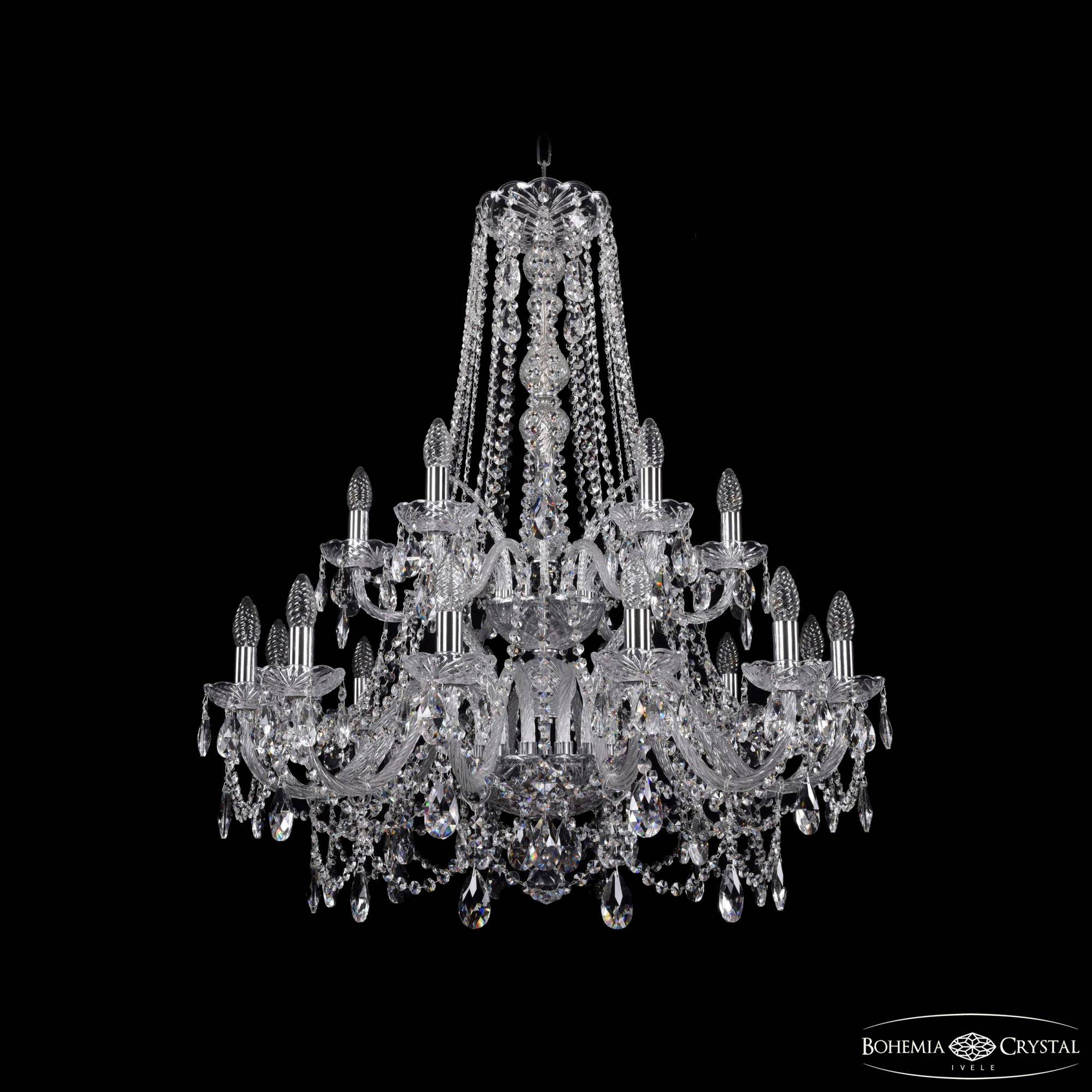 Большая хрустальная люстра Bohemia IVELE Crystal 1411/12+6/300/h-93/2d Ni