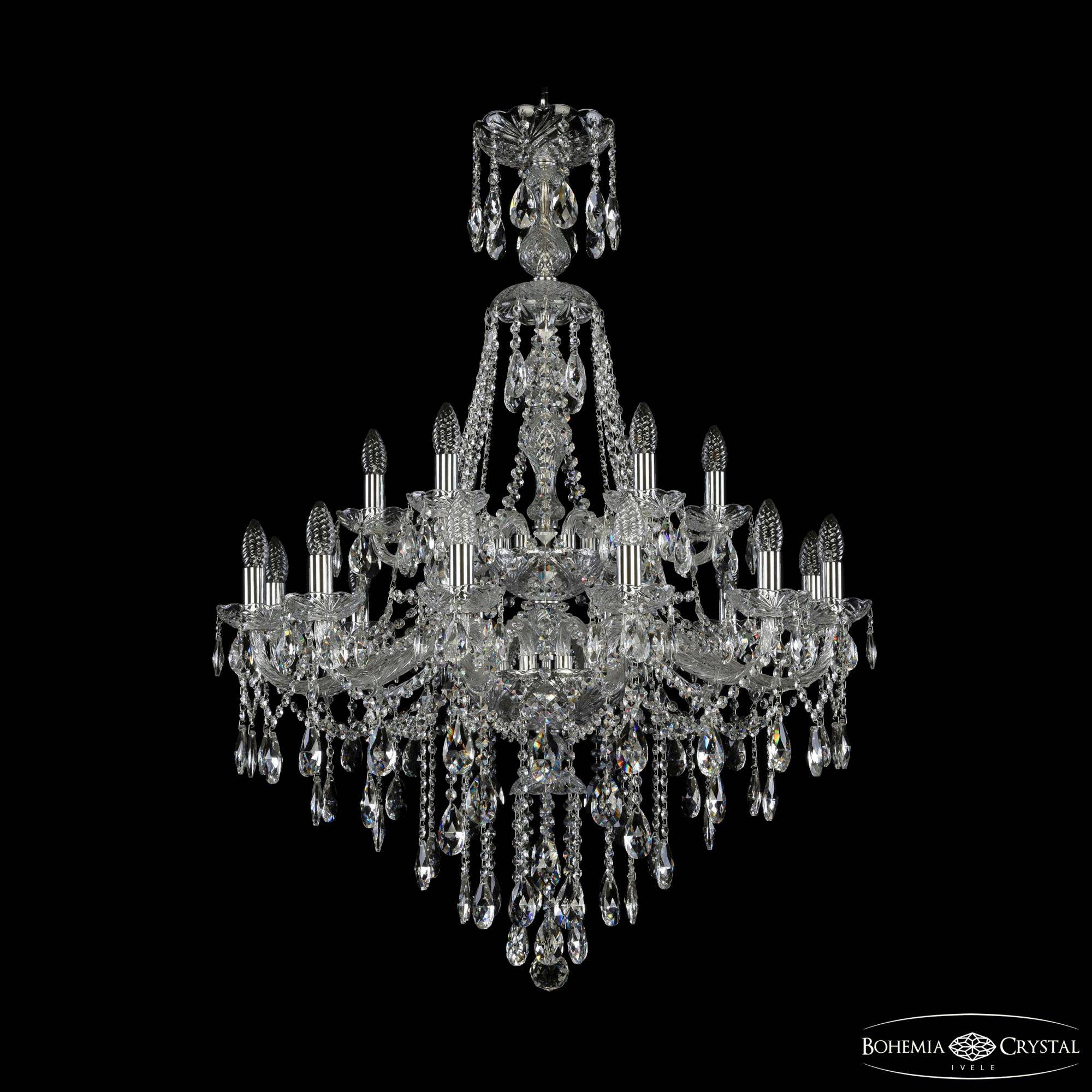 Большая хрустальная люстра Bohemia IVELE Crystal 1415/12+6/300/XL-114/2d Ni