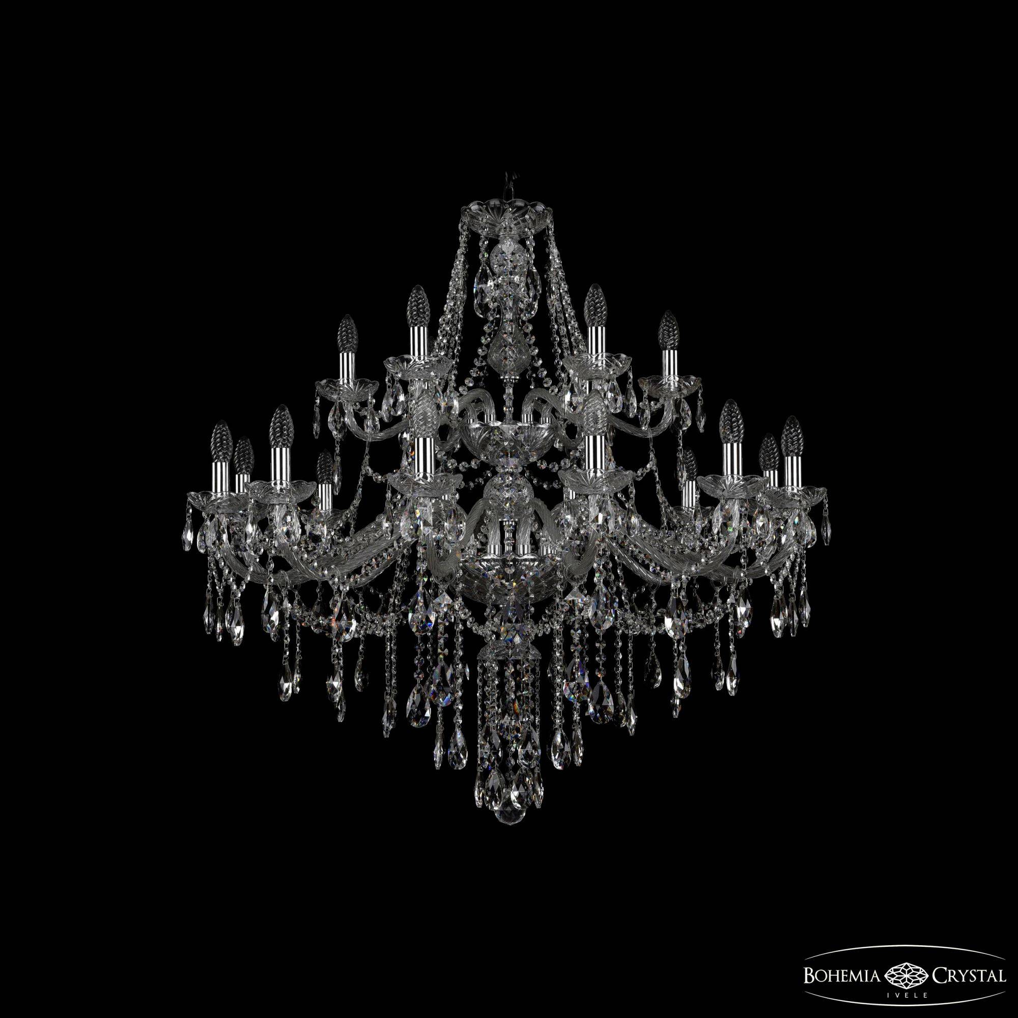 Большая хрустальная люстра Bohemia IVELE Crystal 1415/12+6/360/2d Ni