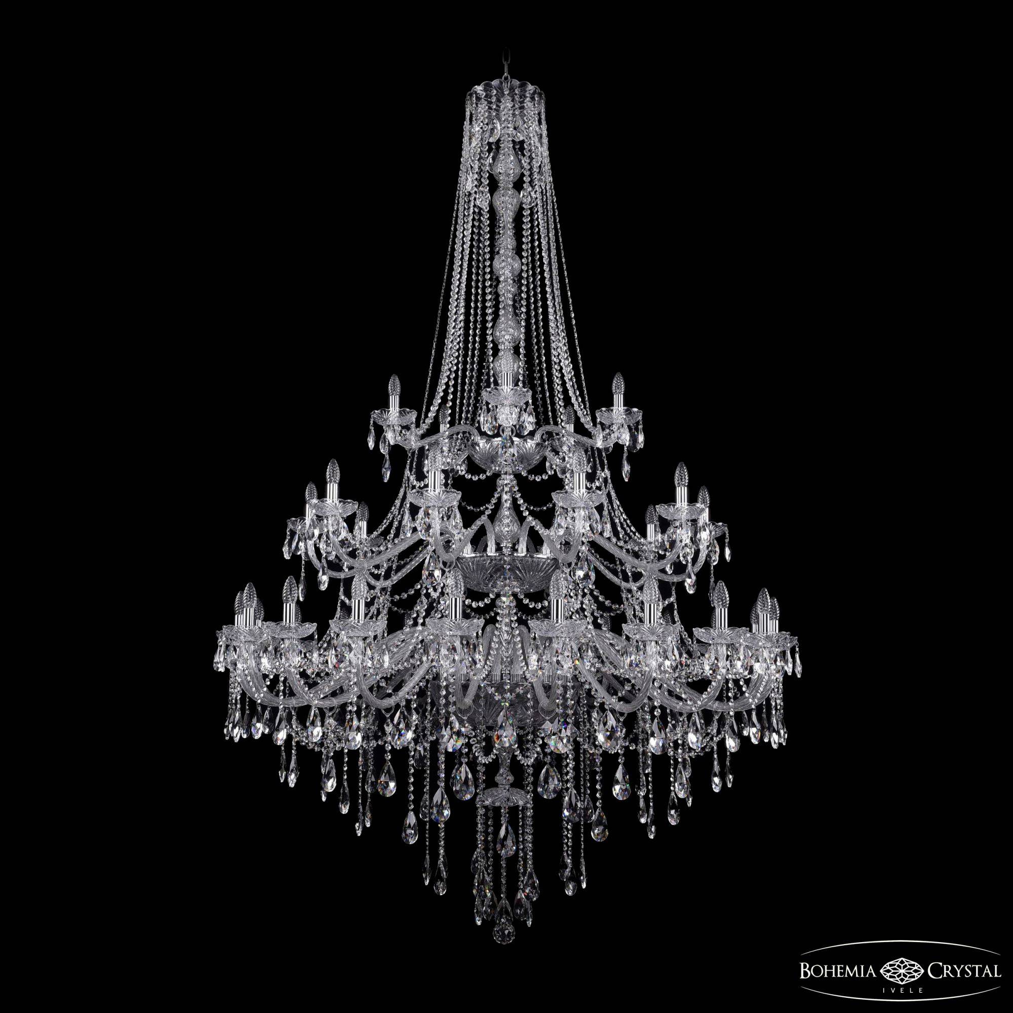 Большая хрустальная люстра Bohemia IVELE Crystal 1415/20+10+5/530/h-231/3d Ni