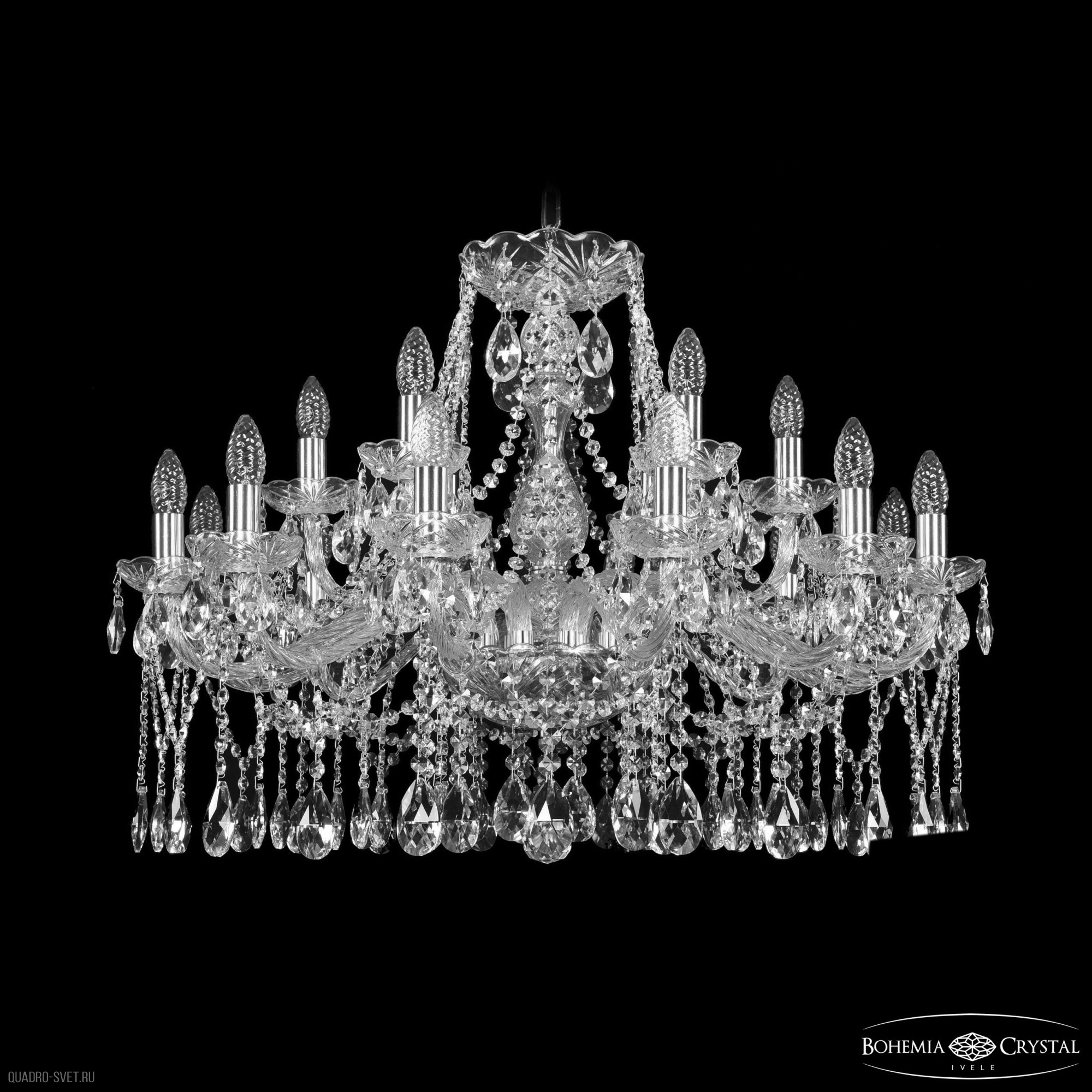 Большая хрустальная люстра Bohemia IVELE Crystal 1413/12+6/300 Ni