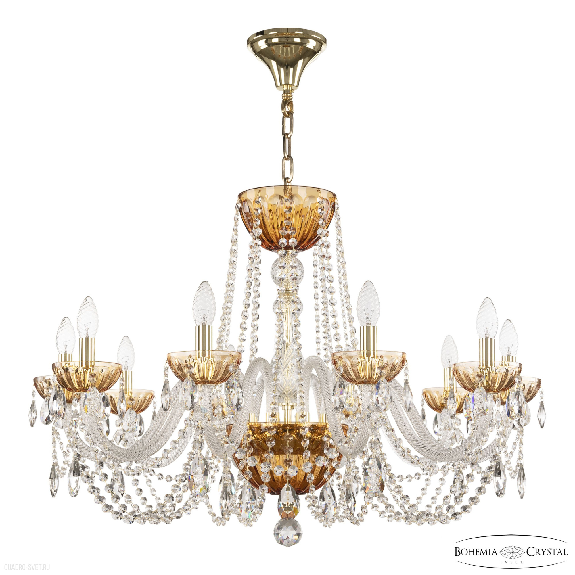 Большая хрустальная люстра Bohemia IVELE Crystal 5402/10/300 G Amber/M-1H