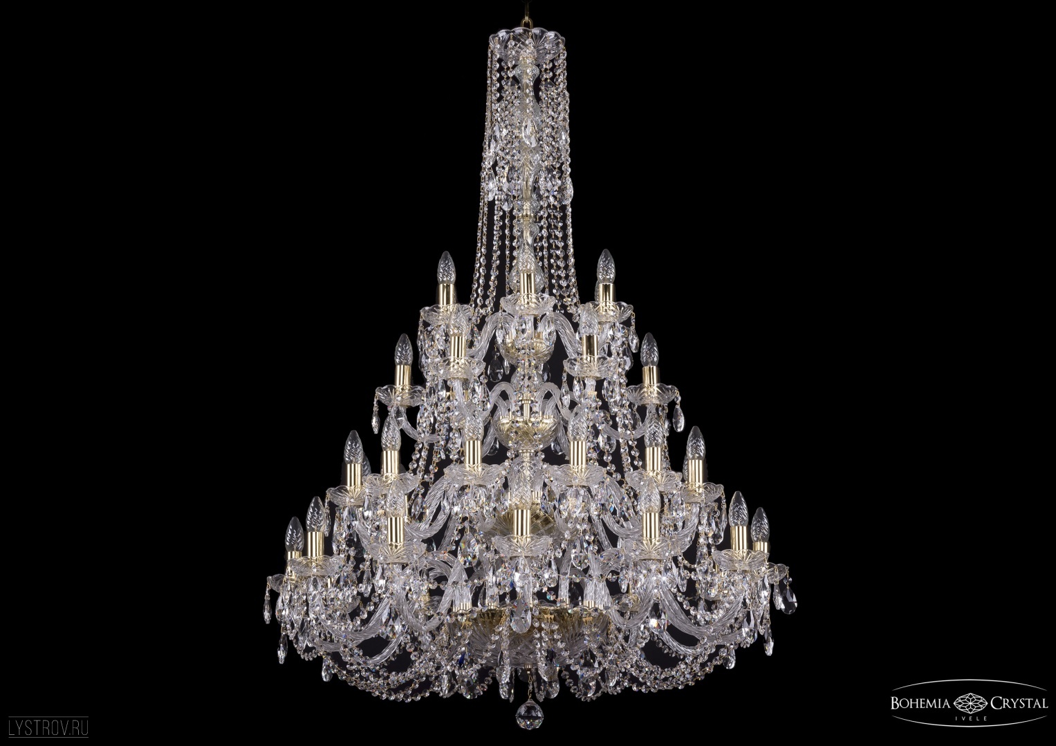 Большая чешская хрустальная люстра Bohemia IVELE Crystal 1406/12+12+6+6/300-130/G подойдет для помещений с высокими потолками и площадью от 85 до 127 квадратных метров. Арматура выполнена из высококачественного металла с нанесением гальванического покрытия. Цвет арматуры - золото. Рожок и декоративные элементы выполнены из высококачественного хрусталя с высокими отражающими и светопреломляющими характеристиками. Форма хрустальных подвесок - классическая.  Цвет хрусталя - прозрачный. По желанию люстра может быть укомплектована цветными хрустальными подвесками различной формы, а также абажурами. В люстре Bohemia Ivele Crystal используется стандартный патрон Е14, в который можно устанавливать как обычные лампы накаливания, так и светодиодные лампы. Отличным дополнением к хрустальной люстре в Вашем интерьере будут хрустальные бра, подвесы, торшеры и настольные лампы Bohemia Ivele Crystal. Мы осуществляем доставку светильников во все регионы Российской Федерации.