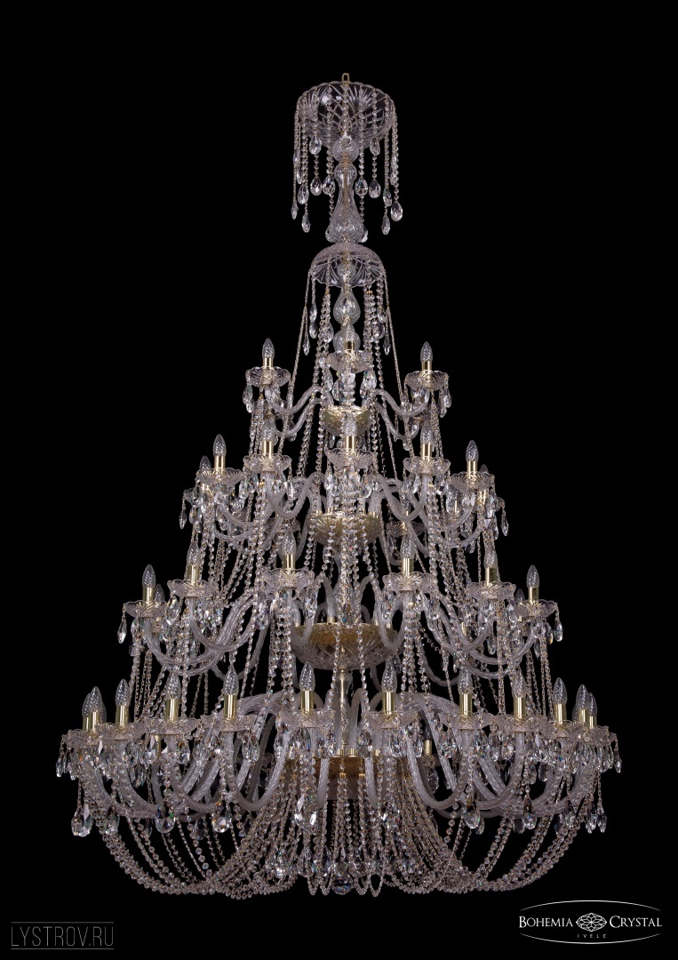 Большая чешская хрустальная люстра Bohemia IVELE Crystal 1406/24+12+12+6/530/XL-230/4d/G подойдет для помещений с высокими потолками и площадью от 127 до 191 квадратных метров. Арматура выполнена из высококачественного металла с нанесением гальванического покрытия. Цвет арматуры - золото. Рожок и декоративные элементы выполнены из высококачественного хрусталя с высокими отражающими и светопреломляющими характеристиками. Форма хрустальных подвесок - классическая.  Цвет хрусталя - прозрачный. По желанию люстра может быть укомплектована цветными хрустальными подвесками различной формы, а также абажурами. В люстре Bohemia Ivele Crystal используется стандартный патрон Е14, в который можно устанавливать как обычные лампы накаливания, так и светодиодные лампы. Отличным дополнением к хрустальной люстре в Вашем интерьере будут хрустальные бра, подвесы, торшеры и настольные лампы Bohemia Ivele Crystal. Мы осуществляем доставку светильников во все регионы Российской Федерации.