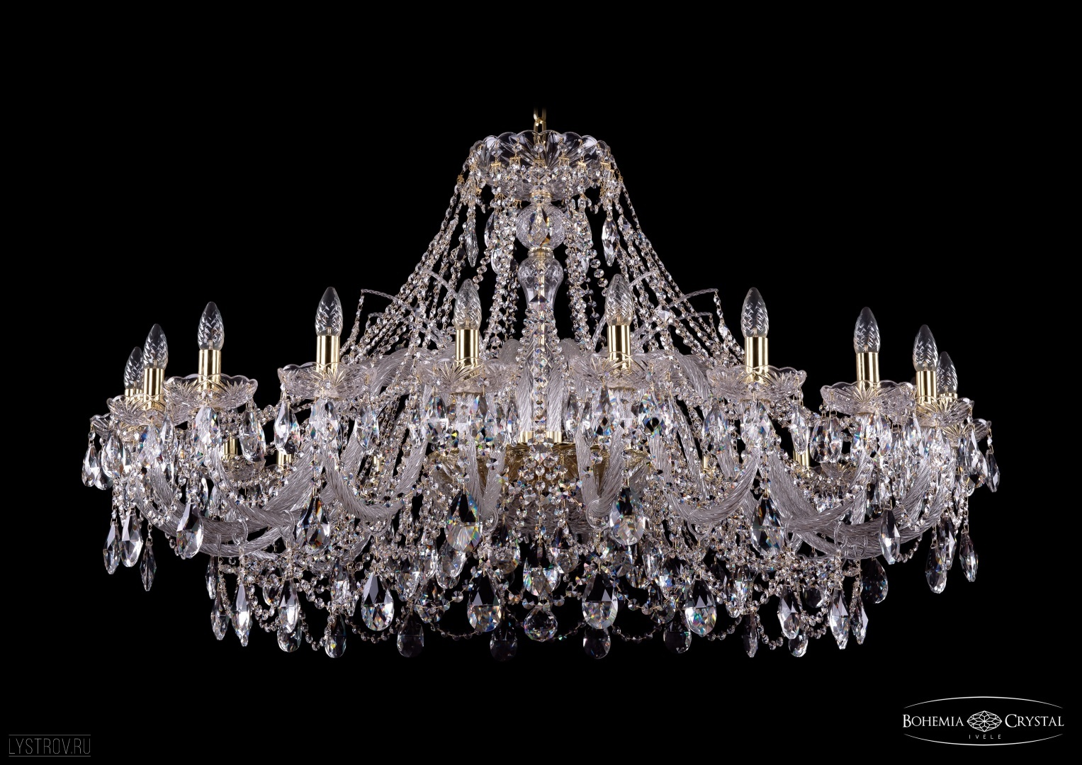 Большая чешская хрустальная люстра Bohemia IVELE Crystal 1411/20/460-80/G подойдет для помещений с высокими потолками и площадью от 47 до 71 квадратных метров. Арматура выполнена из высококачественного металла с нанесением гальванического покрытия. Цвет арматуры - золото. Рожок и декоративные элементы выполнены из высококачественного хрусталя с высокими отражающими и светопреломляющими характеристиками. Форма хрустальных подвесок - классическая.  Цвет хрусталя - прозрачный. По желанию люстра может быть укомплектована цветными хрустальными подвесками различной формы, а также абажурами. В люстре Bohemia Ivele Crystal используется стандартный патрон Е14, в который можно устанавливать как обычные лампы накаливания, так и светодиодные лампы. Отличным дополнением к хрустальной люстре в Вашем интерьере будут хрустальные бра, подвесы, торшеры и настольные лампы Bohemia Ivele Crystal. Мы осуществляем доставку светильников во все регионы Российской Федерации.