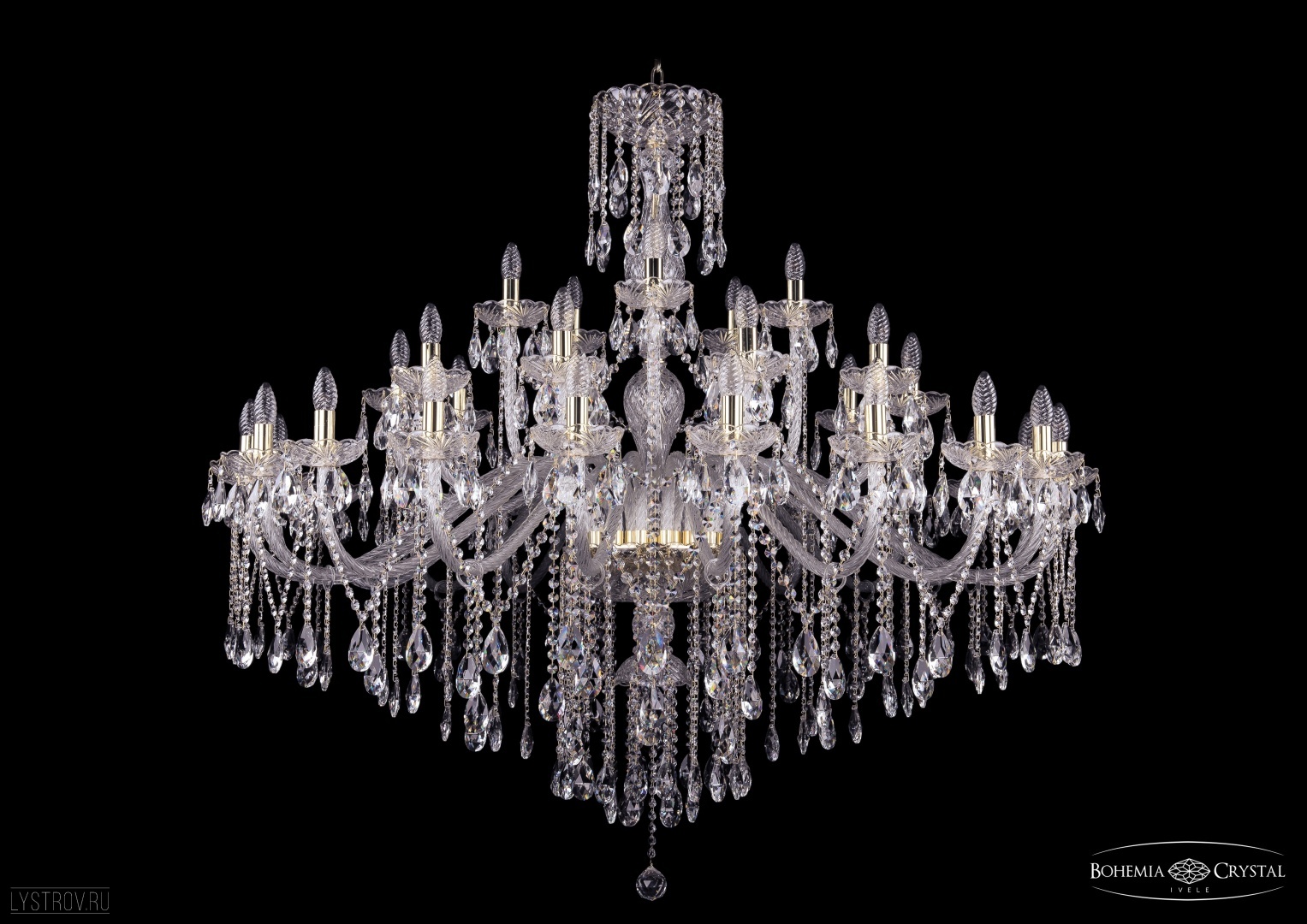 Большая чешская хрустальная люстра Bohemia IVELE Crystal 1415/20+10+5/530-135/G подойдет для помещений с высокими потолками и площадью от 82 до 124 квадратных метров. Арматура выполнена из высококачественного металла с нанесением гальванического покрытия. Цвет арматуры - золото. Рожок и декоративные элементы выполнены из высококачественного хрусталя с высокими отражающими и светопреломляющими характеристиками. Форма хрустальных подвесок - классическая.  Цвет хрусталя - прозрачный. По желанию люстра может быть укомплектована цветными хрустальными подвесками различной формы, а также абажурами. В люстре Bohemia Ivele Crystal используется стандартный патрон Е14, в который можно устанавливать как обычные лампы накаливания, так и светодиодные лампы. Отличным дополнением к хрустальной люстре в Вашем интерьере будут хрустальные бра, подвесы, торшеры и настольные лампы Bohemia Ivele Crystal. Мы осуществляем доставку светильников во все регионы Российской Федерации.