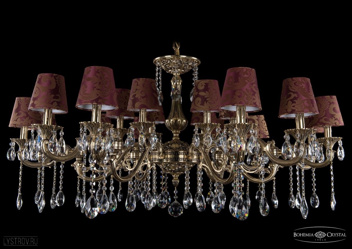 Большая чешская хрустальная люстра Bohemia IVELE Crystal 1703/18/320+210/A/GB/SH27 подойдет для помещений с высокими потолками и площадью от 42 до 64 квадратных метров. Арматура выполнена из литой латуни - сплава на основе меди. Цвет арматуры - золото черненое. Рожок изготовлен из латуни методом литья,  декоративные элементы выполнены из высококачественного хрусталя с высокими отражающими и светопреломляющими характеристиками. Форма хрустальных подвесок - классическая.  Люстра укомплектована абажурами цвета бордо с золотым теснением. В люстре Bohemia Ivele Crystal используется стандартный патрон Е14, в который можно устанавливать как обычные лампы накаливания, так и светодиодные лампы. Отличным дополнением к хрустальной люстре в Вашем интерьере будут хрустальные бра, подвесы, торшеры и настольные лампы Bohemia Ivele Crystal. Мы осуществляем доставку светильников во все регионы Российской Федерации.