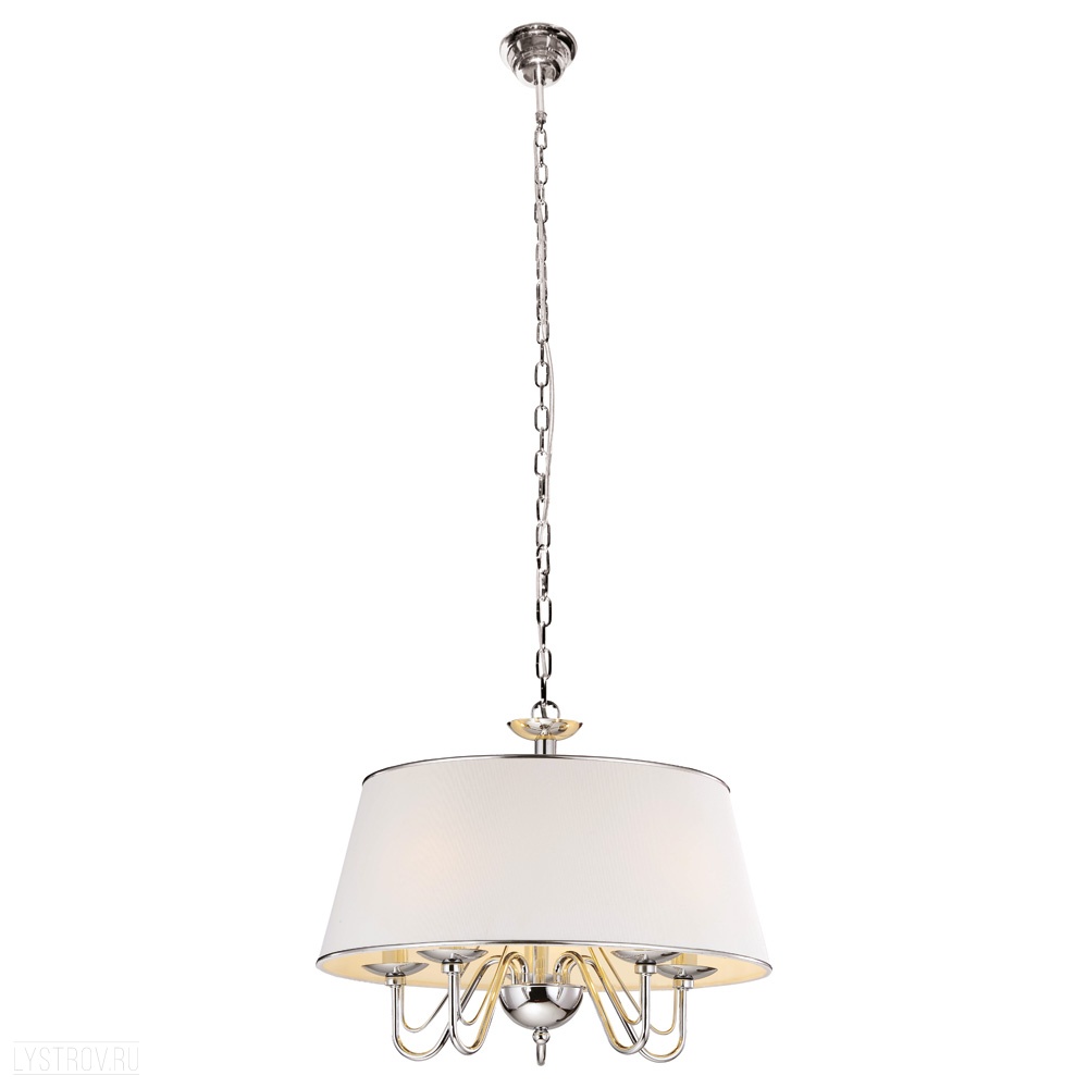Подвесная люстра A1150SP-5CC итальянского производителя Arte Lamp из коллекции AURORA выполнена в стиле модерн. Арматура светильника выполнена из металла цвета хром. Поверхность арматуры глянцевая. Плафон изготовлен из текстиля белого цвета с хромированной каймой, имеет конусную форму и глянцево-матовую поверхность. Направлен вниз. Осветительный прибор рассчитан на освещение пространства площадью 10 кв. м. Тип цоколя используемых ламп E14. Производитель рекомендует использовать лампы мощностью не более 40 Вт. Суммарная мощность светильника составляет 200 Вт. Лампочки в комплект не входят. Защита от попадания влаги и пыли внутрь изделия не предусмотрена. Рекомендуем к применению в гостиной, кабинете, прихожей, спальне.