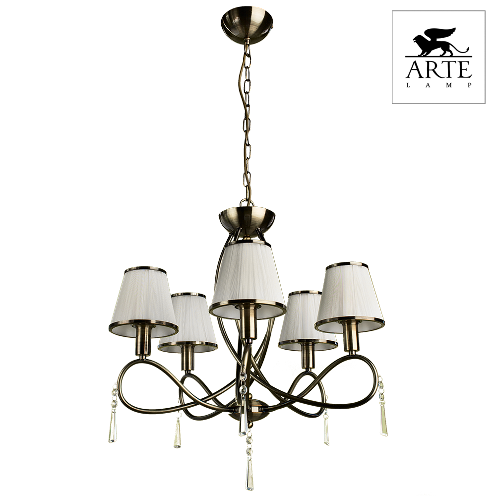 Подвесная люстра A1035LM-5AB итальянского производителя Arte Lamp из коллекции LOGICO выполнена в стиле классика. Арматура светильника выполнена из металла цвета античная бронза. Поверхность арматуры матовая. Плафон изготовлен из текстиля белого цвета с каймой, имеет конусную форму и матовую поверхность. Осветительный прибор рассчитан на освещение пространства площадью 10 кв. м. Тип цоколя используемых ламп E14. Производитель рекомендует использовать лампы мощностью не более 40 Вт. Суммарная мощность светильника составляет 200 Вт. Лампочки в комплект не входят. Защита от попадания влаги и пыли внутрь изделия не предусмотрена. Рекомендуем к применению в гостиной, кабинете, спальне.