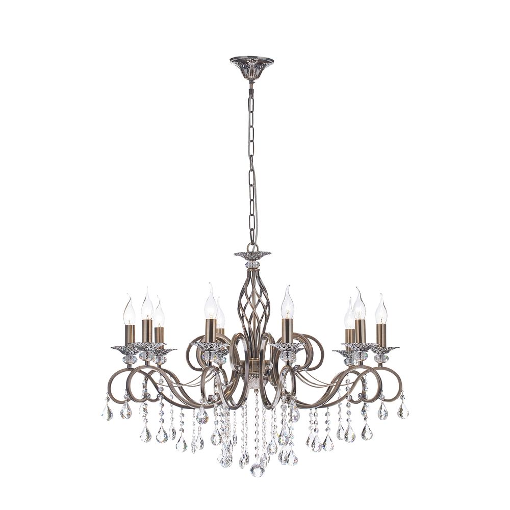 Подвесная люстра RC247-PL-10-R производства Maytoni (Германия) из коллекции Grace выполнена в стиле классика. Арматура светильника выполнена из металла бронзового цвета. Поверхность арматуры глянцевая. Плафон отсутствует. Декоративные элементы выполнены из хрусталя.Осветительный прибор рассчитан на освещение пространства площадью 30 кв. м. Тип цоколя используемых ламп E14. Производитель рекомендует использовать лампы мощностью не более 60 Вт. Суммарная мощность светильника составляет 600 Вт. Лампочки в комплект не входят. Защита от попадания влаги и пыли внутрь изделия не предусмотрена. Рекомендуем к применению в гостиной, кабинете, спальне.