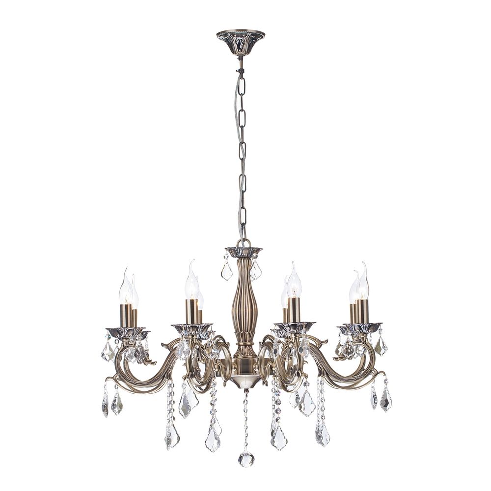 Подвесная люстра RC245-PL-08-R производства Maytoni (Германия) из коллекции Bronze 4 выполнена в стиле классика. Арматура светильника выполнена из металла бронзового цвета. Поверхность арматуры глянцевая. Плафон отсутствует. Декоративные элементы выполнены из хрусталя.Осветительный прибор рассчитан на освещение пространства площадью 24 кв. м. Тип цоколя используемых ламп E14. Производитель рекомендует использовать лампы мощностью не более 60 Вт. Суммарная мощность светильника составляет 480 Вт. Лампочки в комплект не входят. Защита от попадания влаги и пыли внутрь изделия не предусмотрена. Рекомендуем к применению в гостиной, кабинете, спальне.
