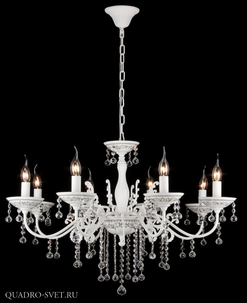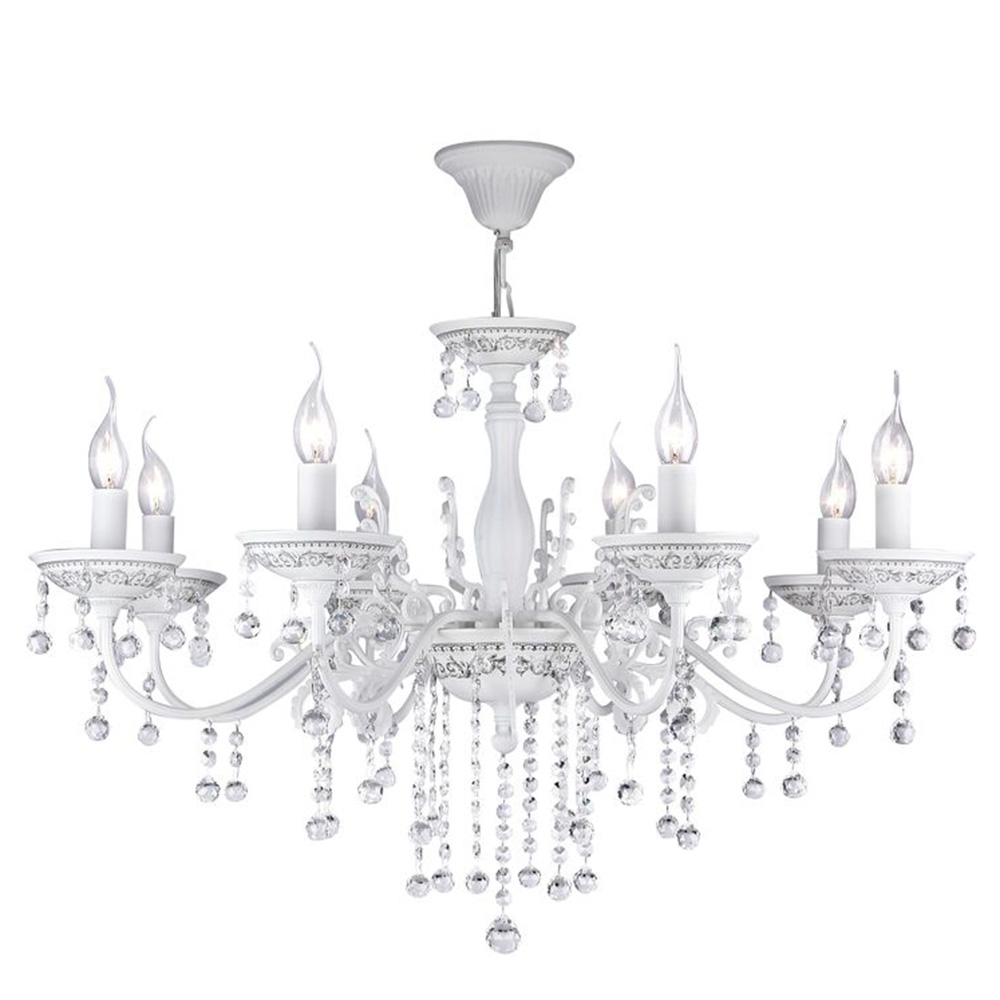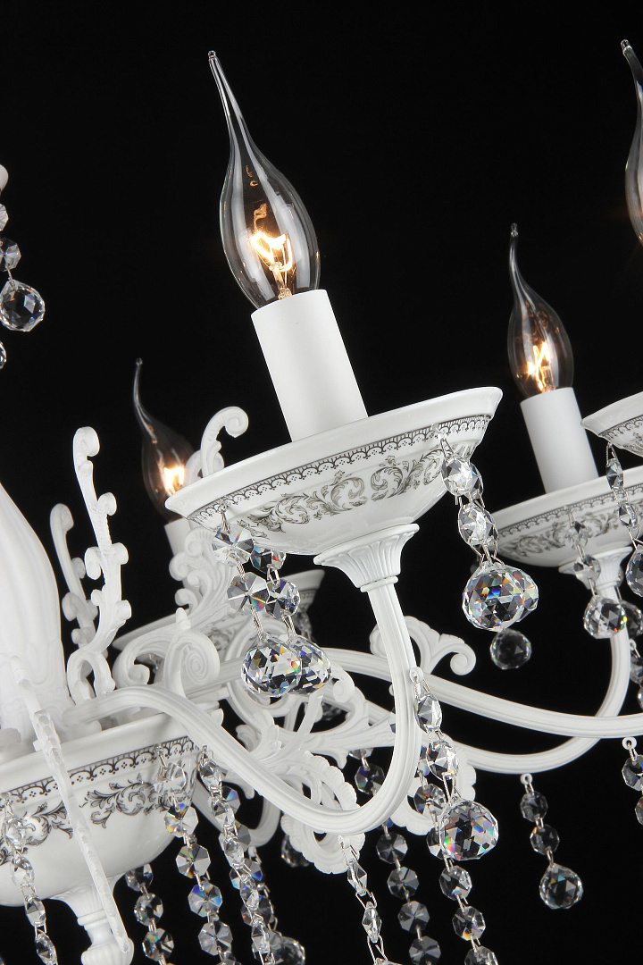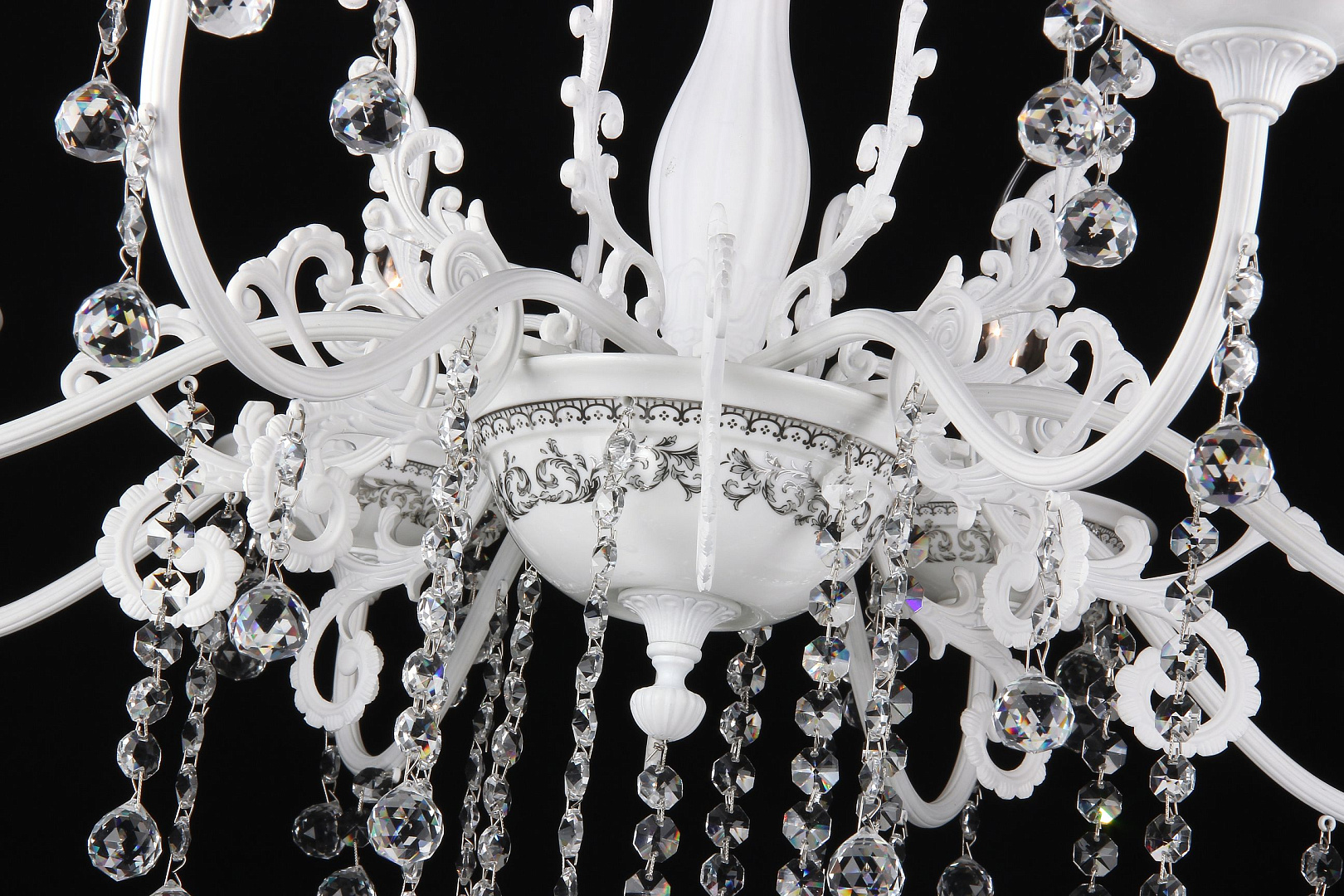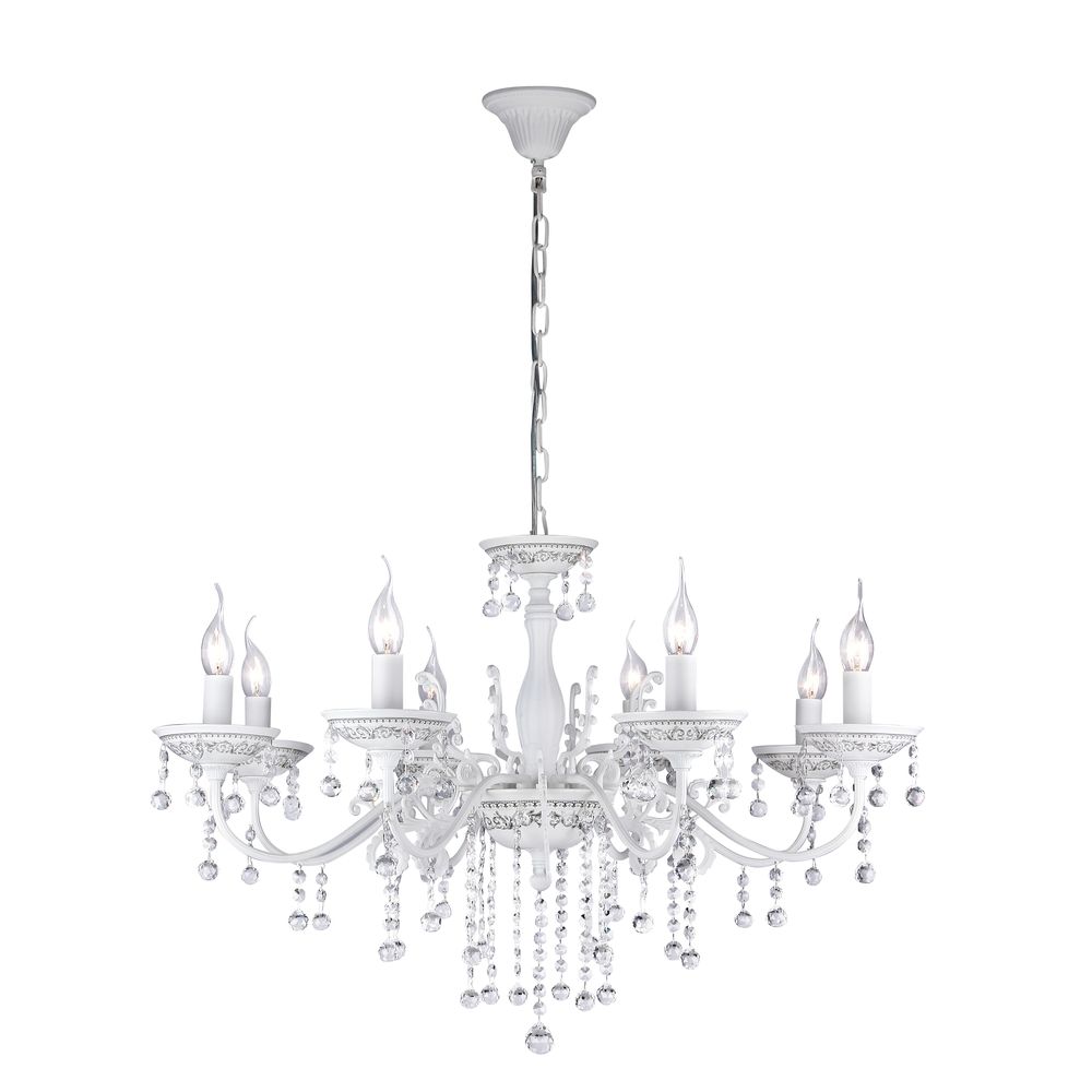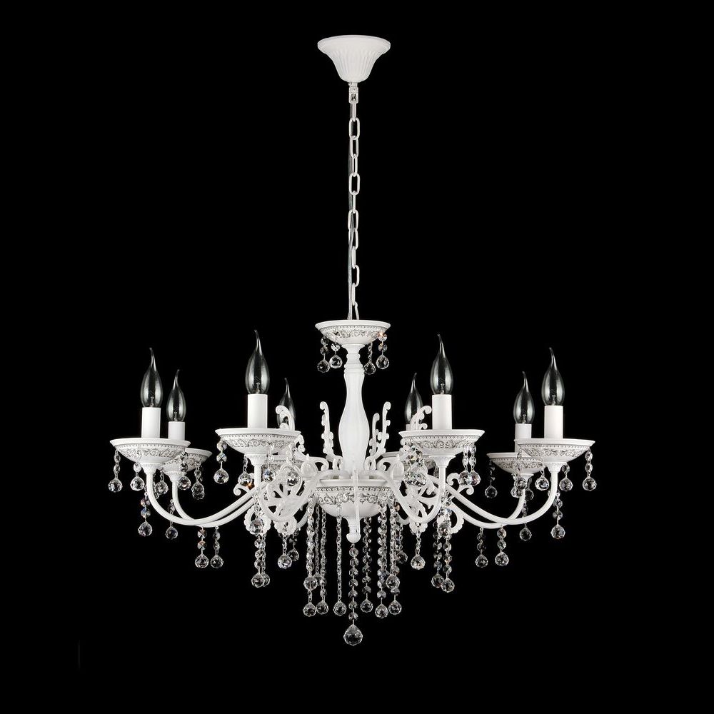 Подвесная люстра ARM386-08-W производства Maytoni (Германия) из коллекции Bellona выполнена в стиле классика. Арматура светильника выполнена из металла белого цвета. Поверхность арматуры матовая, рельефная. Плафон отсутствует. Декоративные элементы выполнены из хрусталя.Осветительный прибор рассчитан на освещение пространства площадью 24 кв. м. Тип цоколя используемых ламп E14. Производитель рекомендует использовать лампы мощностью не более 60 Вт. Суммарная мощность светильника составляет 480 Вт. Лампочки в комплект не входят. Защита от попадания влаги и пыли внутрь изделия не предусмотрена. Рекомендуем к применению в гостиной, кабинете, спальне.