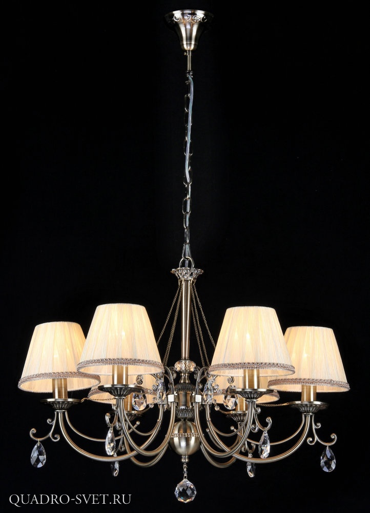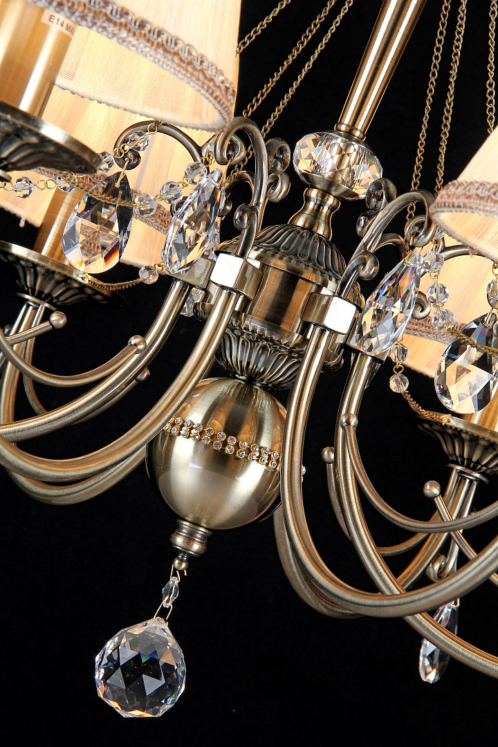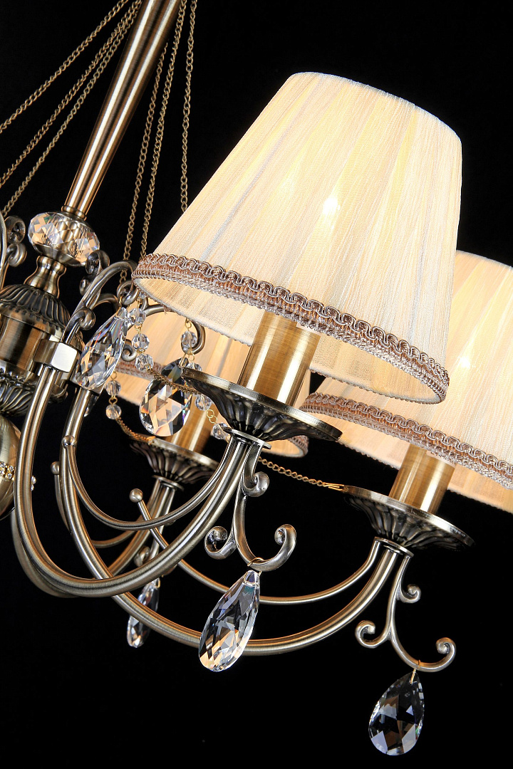 Подвесная люстра RC093-PL-06-R производства Maytoni (Германия) из коллекции Soffia выполнена в стиле классика. Арматура светильника выполнена из металла бронзового цвета. Поверхность арматуры глянцевая. Плафон изготовлен из текстиля бежевого с каймой и прозрачного цветов, имеет конусную форму и матовую поверхность. Направлен вверх и вниз. Декоративные элементы выполнены из хрусталя.Осветительный прибор рассчитан на освещение пространства площадью 12 кв. м. Тип цоколя используемых ламп E14. Производитель рекомендует использовать лампы мощностью не более 40 Вт. Суммарная мощность светильника составляет 240 Вт. Лампочки в комплект не входят. Защита от попадания влаги и пыли внутрь изделия не предусмотрена. Рекомендуем к применению в гостиной, кабинете, спальне.
