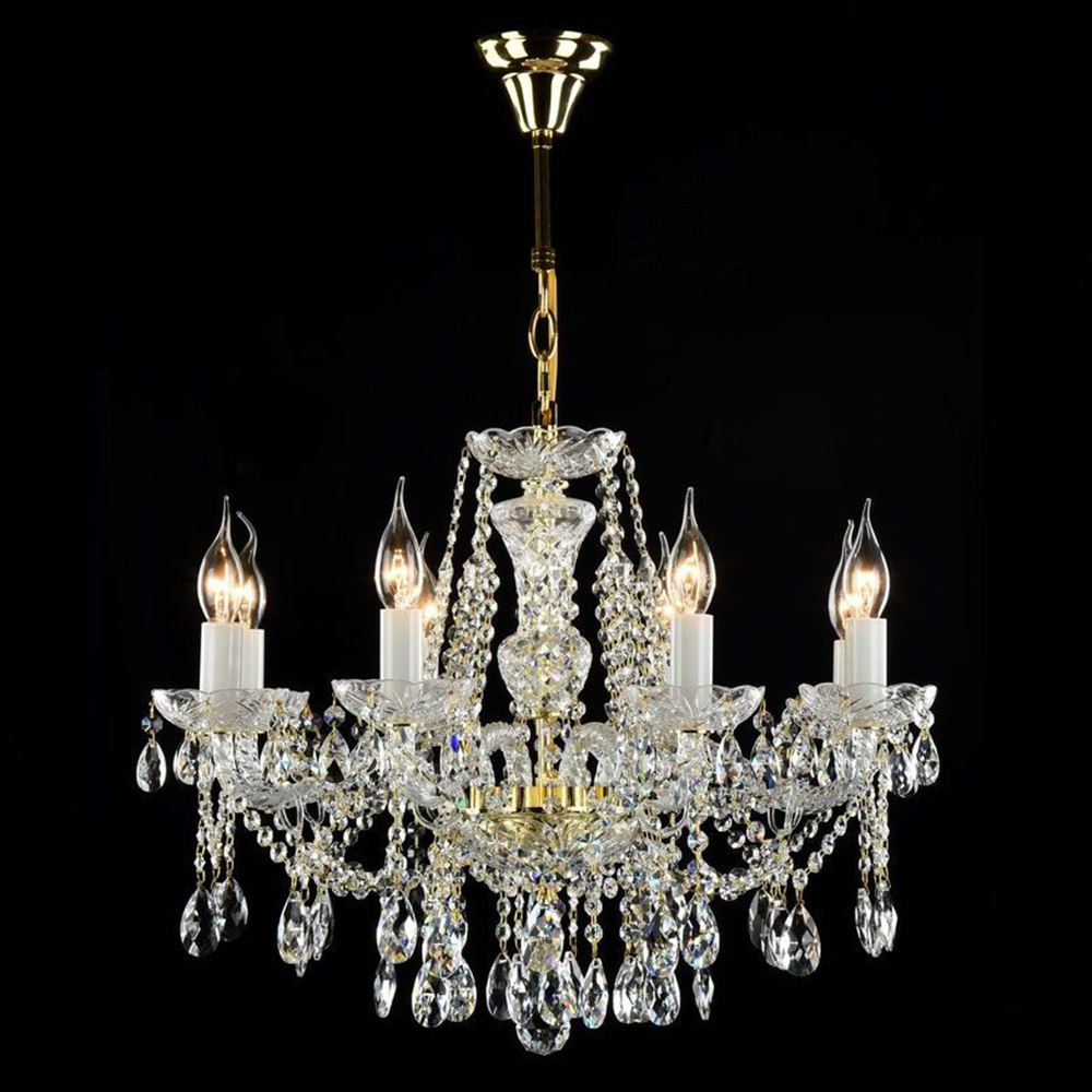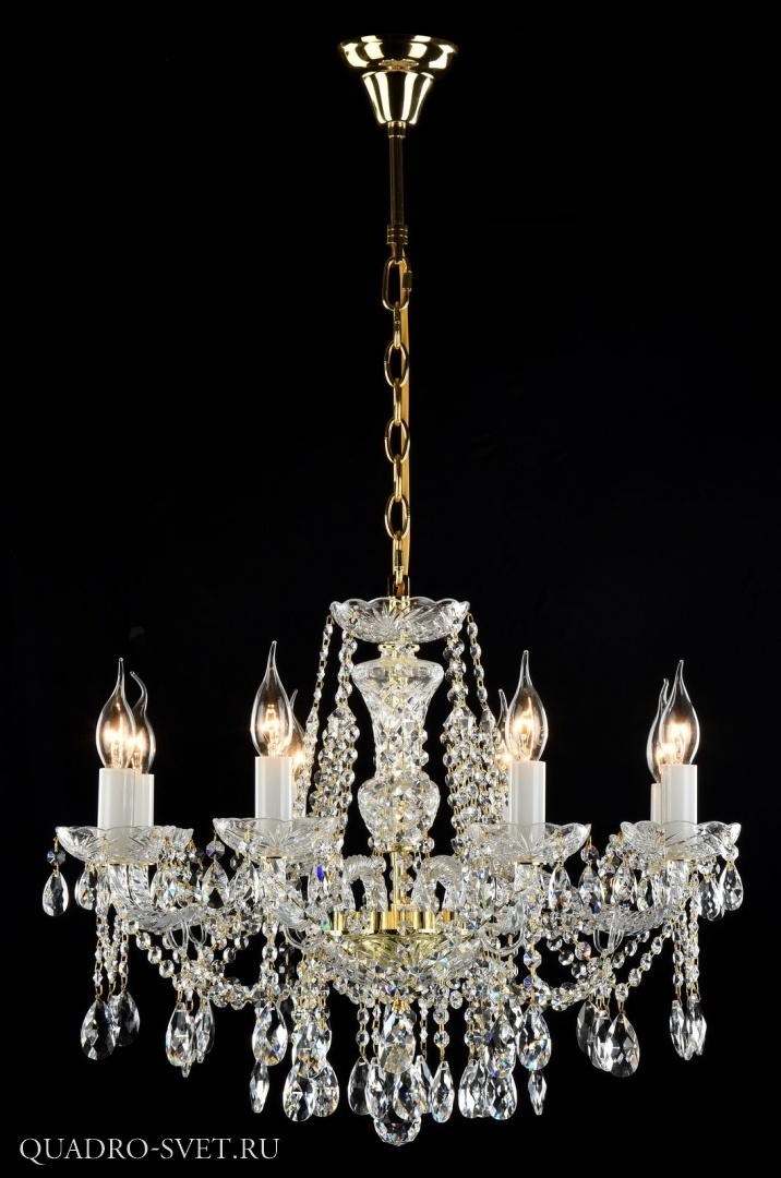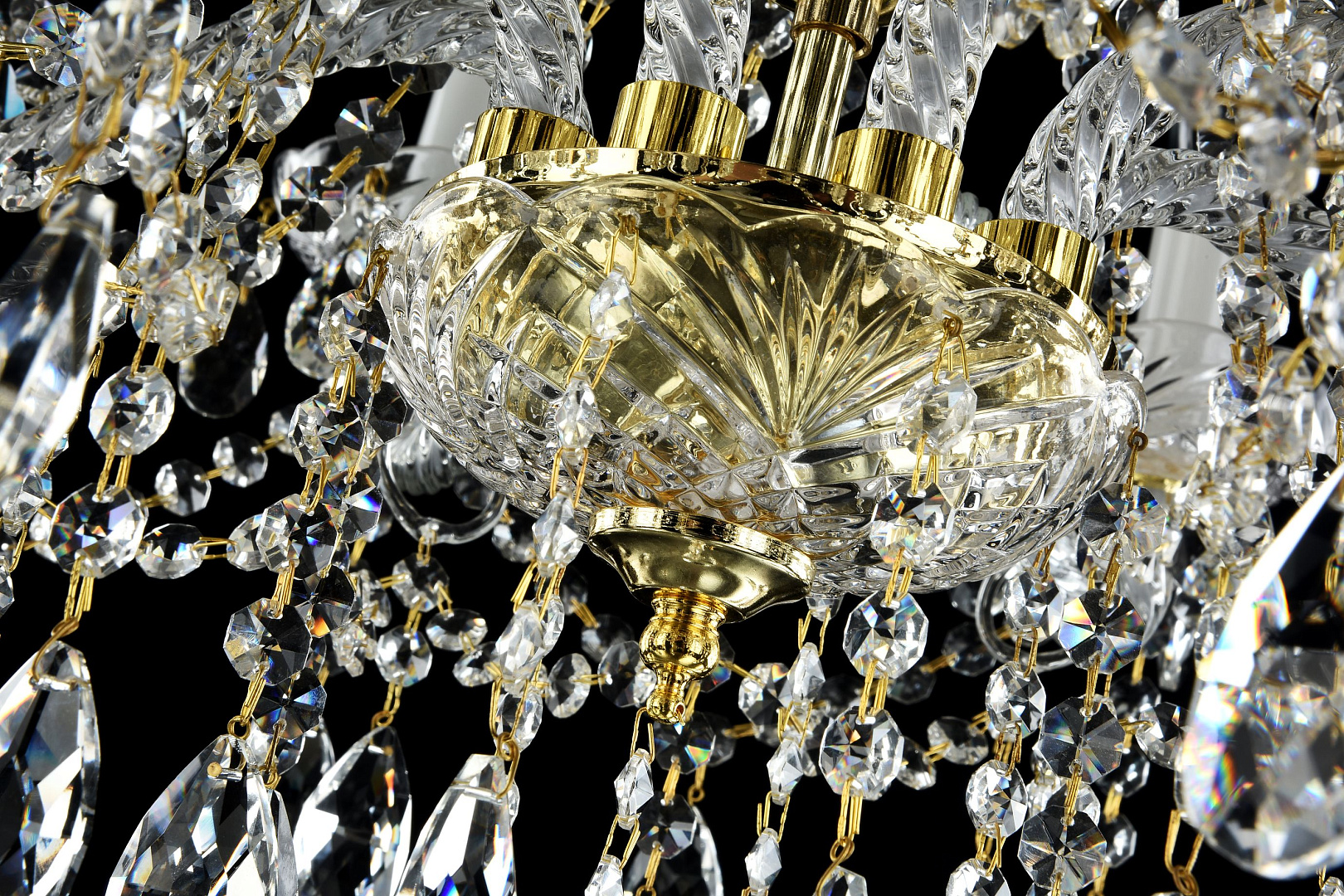 Хрустальная подвесная люстра DIA019-08-G производства Maytoni (Германия) из коллекции Beatrix выполнена в стиле классика. Арматура светильника выполнена из металла и стекла золотого цвета. Поверхность арматуры глянцевая, рельефная. Плафон отсутствует. Декоративные элементы выполнены из хрусталя.Осветительный прибор рассчитан на освещение пространства площадью 24 кв. м. Тип цоколя используемых ламп E14. Производитель рекомендует использовать лампы мощностью не более 60 Вт. Суммарная мощность светильника составляет 480 Вт. Лампочки в комплект не входят. Защита от попадания влаги и пыли внутрь изделия не предусмотрена. Рекомендуем к применению в гостиной, кабинете, спальне.