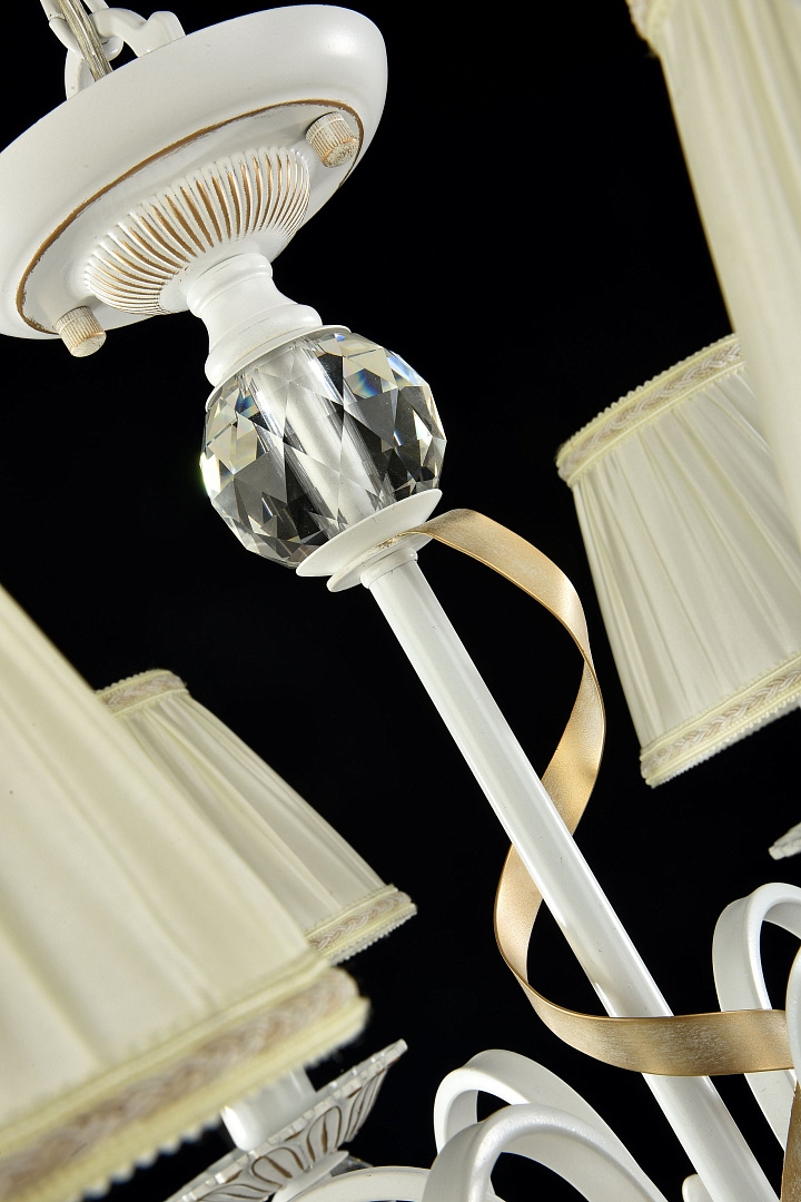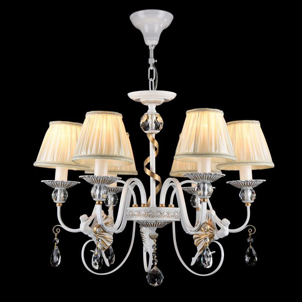 Подвесная люстра ARM222-06-G производства Maytoni (Германия) из коллекции Elina выполнена в стиле классика. Арматура светильника выполнена из металла золотого цвета. Поверхность арматуры матовая, рельефная. Плафон изготовлен из текстиля кремового желтого цвета, имеет конусную форму и матовую поверхность. Направлен вверх и вниз. Декоративные элементы выполнены из хрусталя.Осветительный прибор рассчитан на освещение пространства площадью 12 кв. м. Тип цоколя используемых ламп E14. Производитель рекомендует использовать лампы мощностью не более 40 Вт. Суммарная мощность светильника составляет 240 Вт. Лампочки в комплект не входят. Защита от попадания влаги и пыли внутрь изделия не предусмотрена. Рекомендуем к применению в гостиной, кабинете, спальне.