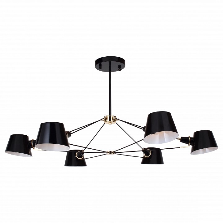 Подвесная люстра 1512-6P производства Favourite (Германия) из коллекции Eimer выполнена в современном стиле. Арматура светильника выполнена из металла черного цвета. Поверхность арматуры матовая. Плафон изготовлен из металла черного и белого цветов, имеет конусную форму и матовую поверхность. Направлен вниз. Осветительный прибор рассчитан на освещение пространства площадью 12 кв. м. Тип цоколя используемых ламп E14. Производитель рекомендует использовать лампы мощностью не более 40 Вт. Суммарная мощность светильника составляет 240 Вт. Лампочки в комплект не входят. Защита от попадания влаги и пыли внутрь изделия не предусмотрена. Рекомендуем к применению в гостиной, кабинете, спальне.