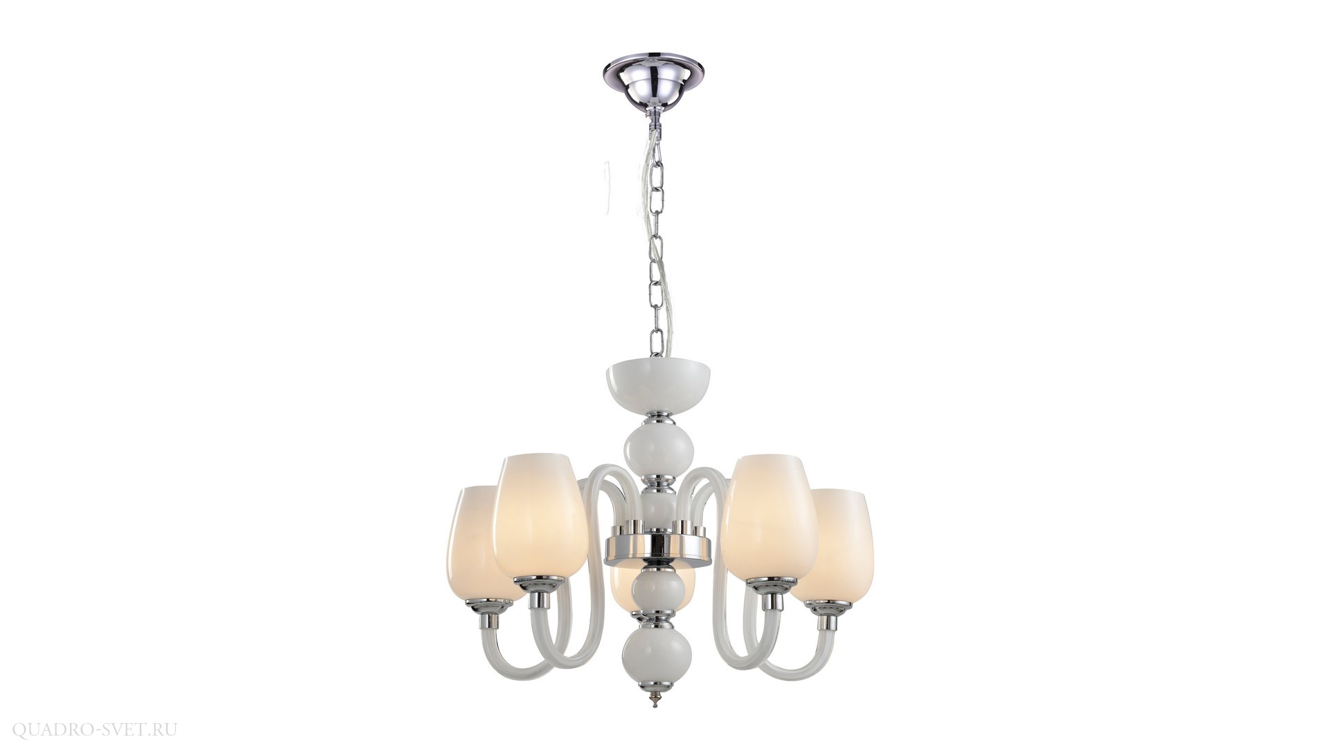 Подвесная люстра A1404LM-5WH итальянского производителя Arte Lamp из коллекции LAVINIA выполнена в стиле модерн. Арматура светильника выполнена из металла белого и хромового цветов. Поверхность арматуры глянцевая. Плафон изготовлен из стекла белого цвета, имеет форму колокола и матовую поверхность. Направлен вверх. Осветительный прибор рассчитан на освещение пространства площадью 10 кв. м. Тип цоколя используемых ламп E14. Производитель рекомендует использовать лампы мощностью не более 40 Вт. Суммарная мощность светильника составляет 200 Вт. Лампочки в комплект не входят. Защита от попадания влаги и пыли внутрь изделия не предусмотрена. Рекомендуем к применению в гостиной, кабинете, спальне.