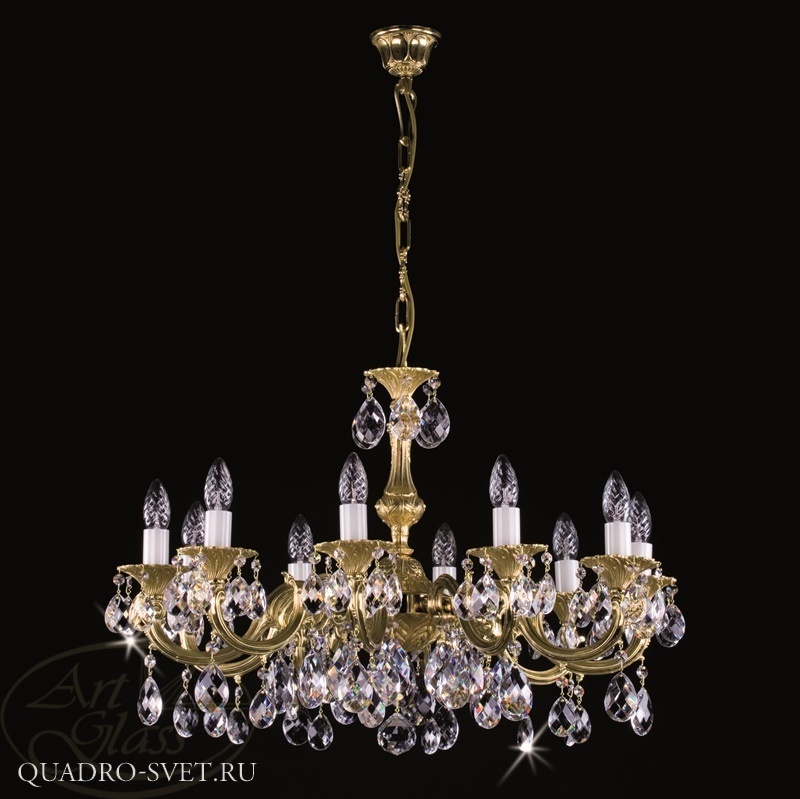Латунная хрустальная люстра размерами 72 х 50 см, с 10 лампочками и с хрустальными подвесками Crystal Exclusive. Литые детали в золотом, сереврянном, старинном или других видах покрытия очень привлекательно комбинируются с блестящими хрустальными подвесками и гарантируют высокий блеск этого хрустального светильника. Люстра подходит к всем типам интерьеров - классическим или современным.