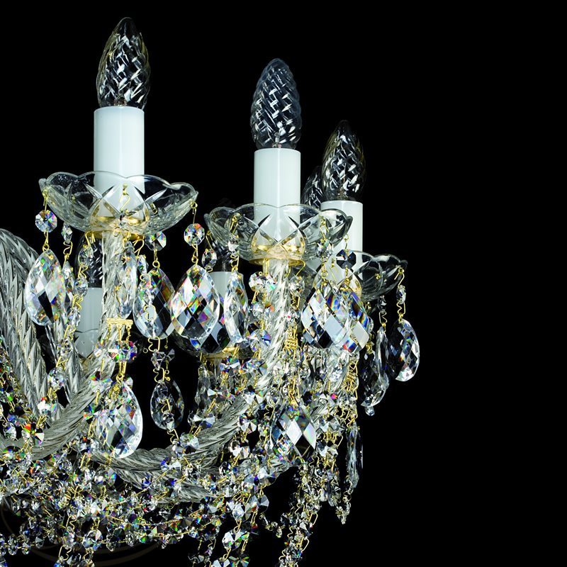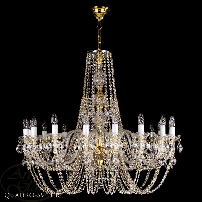 Большая хрустальная люстра размерами 1,0 х 0,8 см с 36 лампочками и хрустальными подвесками Classic, Crystal Exclusive или Swarovski Spectra. Хрустальные и стеклянные элементы вместе с мягко блестящими металлическими деталями гарантируют высокий блеск этого изделия. Светильник подходит к всем типам интерьеров - классическим и современным.
