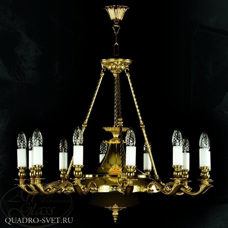Латлунная люстра размерами 72 х 58 см, с 12 лампочками, в форме классической люстры со свечами. Литые детали можно предложить в золотом, сереврянном, старинном или других видах покрытия. Люстра подходит к всем типам интерьеров - классическим или современным.