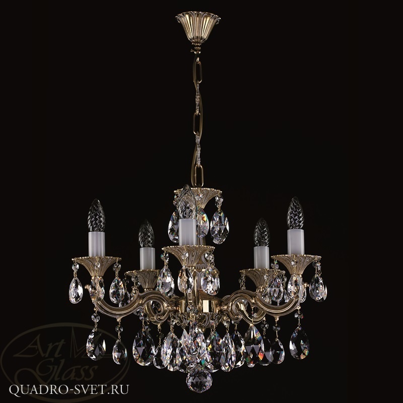Латунная хрустальная люстра размерами 52 х 35 см, с 5 лампочками и с хрустальными подвесками Classic, Crystal Exclusive или Swarovski Spectra. Литые детали в золотом, сереврянном, старинном или других видах покрытия очень привлекательно комбинируются с блестящими хрустальными подвесками и гарантируют высокий блеск этого хрустального светильника. Люстра подходит к всем типам интерьеров - классическим или современным.