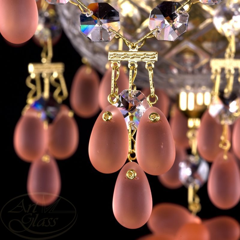 Хрустальная люстра размерами 48 х 42 см с 8 лампочками и хрустальными подвесками виноград. Хрустальные и стеклянные элементы вместе с мягко блестящими металлическими деталями гарантируют высокий блеск этого изделия. Светильник подходит к всем типам интерьеров - классическим и современным.