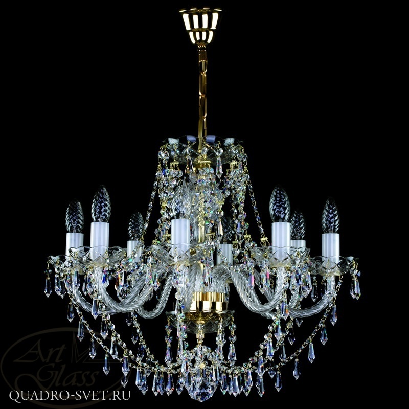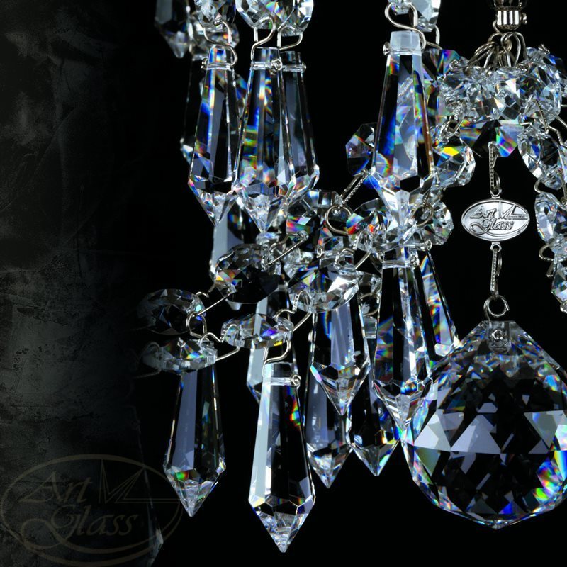 Хрустальная люстра размерами 58 х 48 см с 8 лампочками и хрустальными подвесками Crystal Exclusive или Swarovski Spectra. Хрустальные и стеклянные элементы вместе с мягко блестящими металлическими деталями гарантируют высокий блеск этого изделия. Светильник подходит к всем типам интерьеров - классическим и современным.
