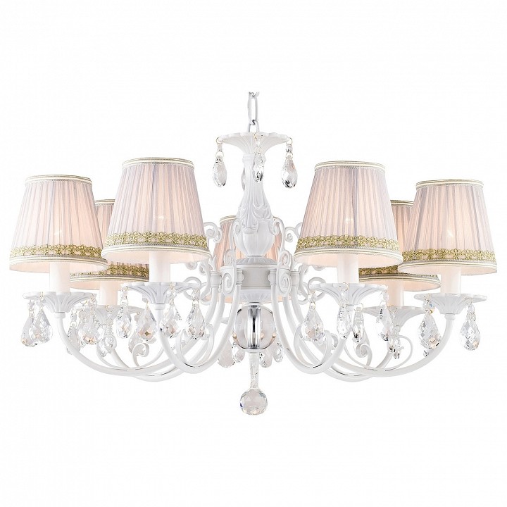 Подвесная люстра 1729-7P производства Favourite (Германия) из коллекции Alla выполнена в стиле классика. Арматура светильника выполнена из металла белого матового цвета. Поверхность арматуры матовая, рельефная. Плафон изготовлен из текстиля белого цвета с золотой тесьмой, имеет конусную форму и матовую поверхность. Направлен вверх и вниз. Декоративные элементы выполнены из хрусталя.Осветительный прибор рассчитан на освещение пространства площадью 14 кв. м. Тип цоколя используемых ламп E14. Производитель рекомендует использовать лампы мощностью не более 40 Вт. Суммарная мощность светильника составляет 280 Вт. Лампочки в комплект не входят. Защита от попадания влаги и пыли внутрь изделия не предусмотрена. Рекомендуем к применению в гостиной, кабинете, спальне.