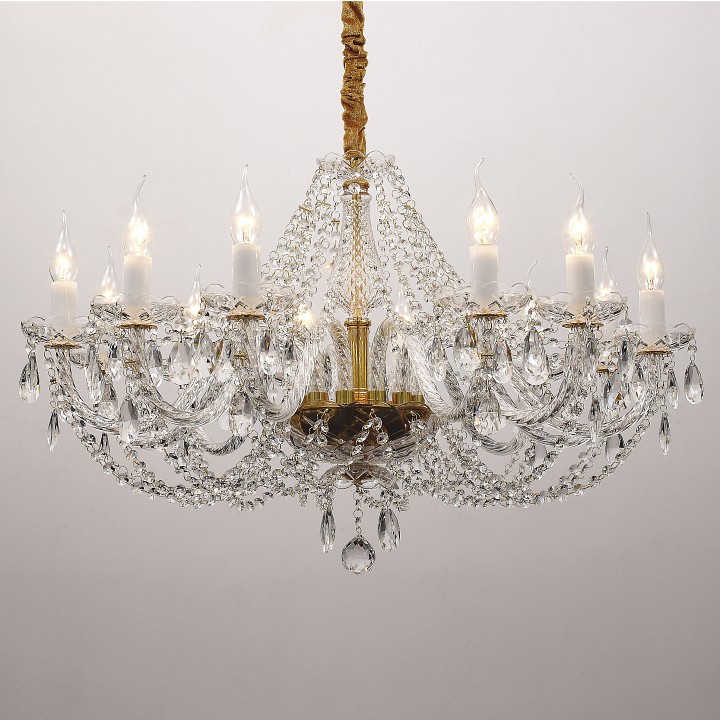 Хрустальная подвесная люстра 1736-12P производства Favourite (Германия) из коллекции Simone выполнена в стиле классика. Арматура светильника выполнена из металла золотого цвета. Поверхность арматуры глянцевая. Плафон отсутствует. Декоративные элементы выполнены из хрусталя.Осветительный прибор рассчитан на освещение пространства площадью 24 кв. м. Тип цоколя используемых ламп E14. Производитель рекомендует использовать лампы мощностью не более 40 Вт. Суммарная мощность светильника составляет 480 Вт. Лампочки в комплект не входят. Защита от попадания влаги и пыли внутрь изделия не предусмотрена.