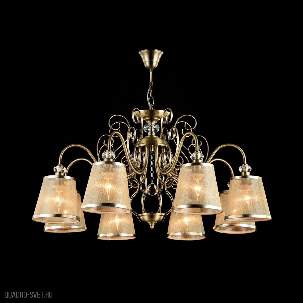 Подвесная люстра FR2405-PL-08-BZ производства Freya (Германия) из коллекции Driana выполнена в стиле классика. Арматура светильника выполнена из металла цвета античная бронза. Поверхность арматуры матовая. Плафон изготовлен из ПВХ и органзы бежевого с каймой и прозрачного цветов, имеет конусную форму и матовую поверхность. Направлен вверх и вниз. Декоративные элементы выполнены из хрусталя.Осветительный прибор рассчитан на освещение пространства площадью 16 кв. м. Тип цоколя используемых ламп E14. Производитель рекомендует использовать лампы мощностью не более 40 Вт. Суммарная мощность светильника составляет 320 Вт. Лампочки в комплект не входят. Защита от попадания влаги и пыли внутрь изделия не предусмотрена. Рекомендуем к применению в гостиной, кабинете, спальне.