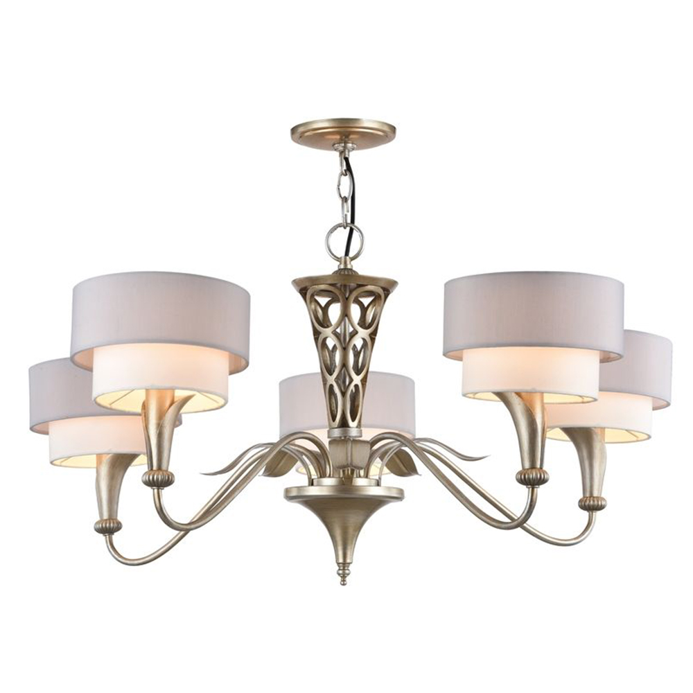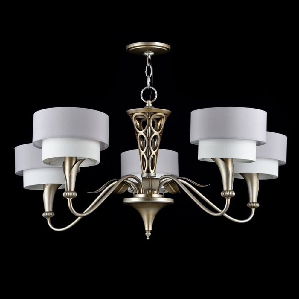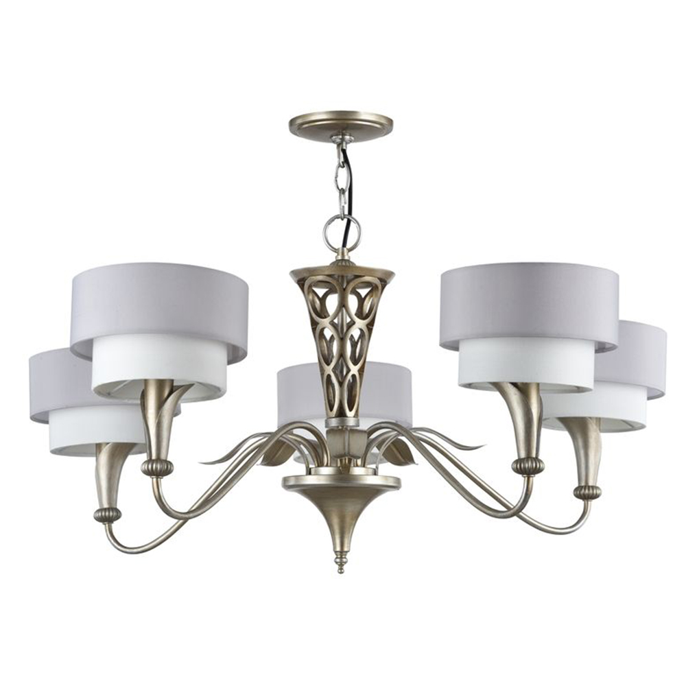 Подвесная люстра H311-05-G производства Maytoni (Германия) из коллекции Lillian выполнена в стиле модерн. Арматура светильника выполнена из металла цвета жемчужное золото. Поверхность арматуры глянцевая. Плафон изготовлен из хлопка и вискозы на ПВХ белого и серого цветов, имеет цилиндрическую форму и матовую поверхность. Направлен вверх и вниз. Осветительный прибор рассчитан на освещение пространства площадью 10 кв. м. Тип цоколя используемых ламп E14. Производитель рекомендует использовать лампы мощностью не более 40 Вт. Суммарная мощность светильника составляет 200 Вт. Лампочки в комплект не входят. Защита от попадания влаги и пыли внутрь изделия не предусмотрена. Рекомендуем к применению в гостиной, кабинете, спальне.