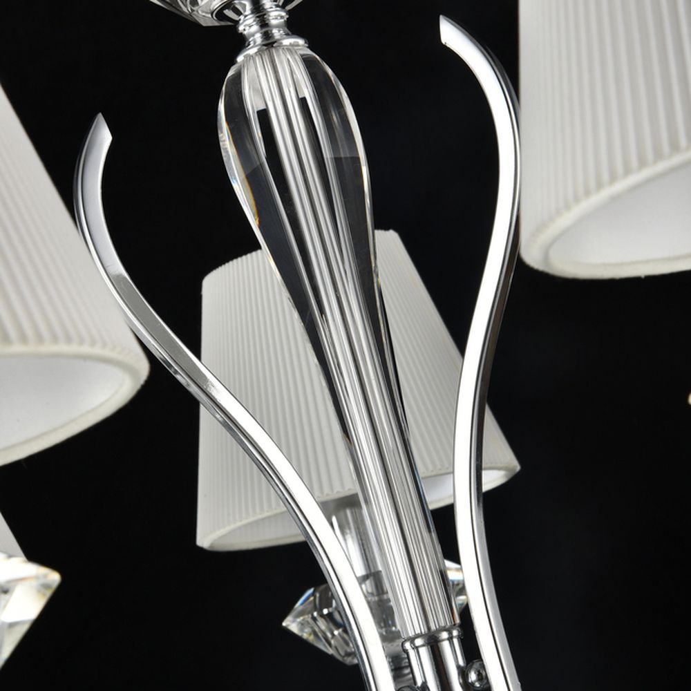 Подвесная люстра MOD560-05-N производства Maytoni (Германия) из коллекции Smusso выполнена в стиле модерн. Арматура светильника выполнена из металла цвета хром. Поверхность арматуры глянцевая. Плафон изготовлен из ПВХ и хлопка белого цвета, имеет конусную форму и матовую поверхность. Направлен вверх и вниз. Декоративные элементы выполнены из хрусталя.Осветительный прибор рассчитан на освещение пространства площадью 10 кв. м. Тип цоколя используемых ламп E14. Производитель рекомендует использовать лампы мощностью не более 40 Вт. Суммарная мощность светильника составляет 200 Вт. Лампочки в комплект не входят. Защита от попадания влаги и пыли внутрь изделия не предусмотрена. Рекомендуем к применению в гостиной, кабинете, спальне.