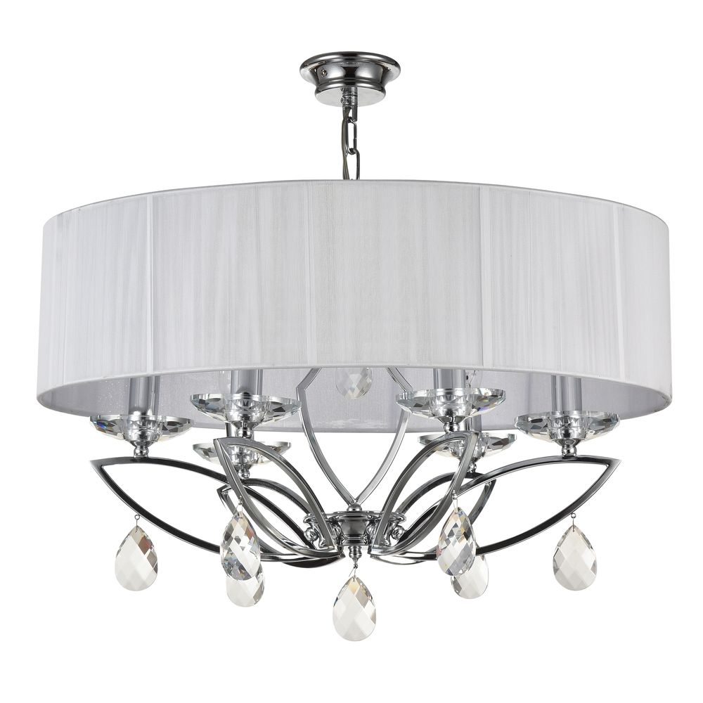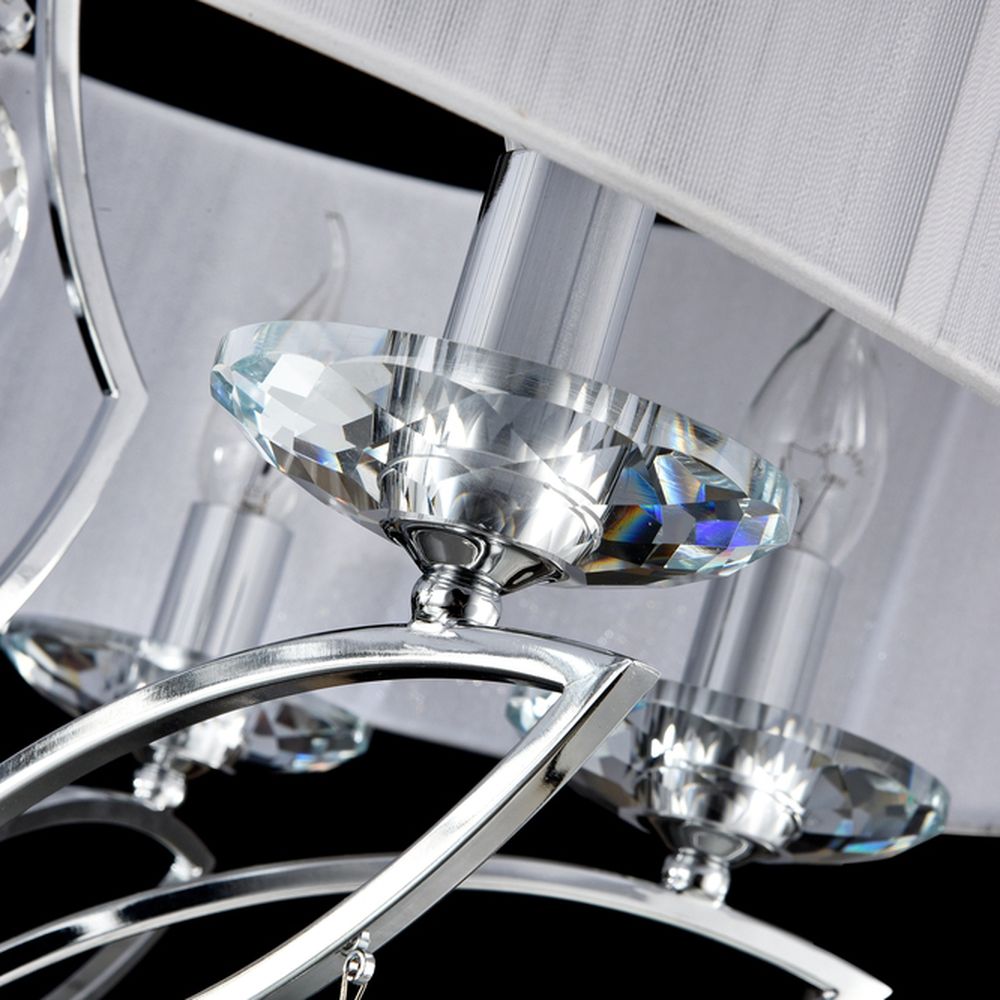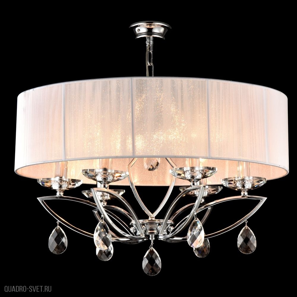 Подвесная люстра MOD602-06-N производства Maytoni (Германия) из коллекции Miraggio выполнена в стиле модерн. Арматура светильника выполнена из металла цвета хром. Поверхность арматуры глянцевая. Плафон изготовлен из органзы белого цвета, имеет цилиндрическую форму и матовую поверхность. Направлен вверх и вниз. Декоративные элементы выполнены из хрусталя.Осветительный прибор рассчитан на освещение пространства площадью 12 кв. м. Тип цоколя используемых ламп E14. Производитель рекомендует использовать лампы мощностью не более 40 Вт. Суммарная мощность светильника составляет 240 Вт. Лампочки в комплект не входят. Защита от попадания влаги и пыли внутрь изделия не предусмотрена. Рекомендуем к применению в гостиной, кабинете, прихожей, спальне.