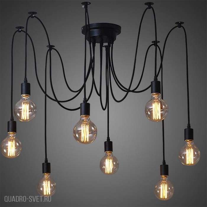 Подвесная люстра LSP-9840 итальянского производителя Lussole LOFT из коллекции LSP-9840 исполнена в стиле лофт. Арматура светильника выполнена из металла черного цвета. Поверхность арматуры матовая. Плафон отсутствует. Осветительный прибор рассчитан на освещение пространства площадью 24 кв. м. Тип цоколя используемых ламп E27. Производитель рекомендует использовать лампы мощностью не более 60 Вт. Суммарная мощность светильника составляет 480 Вт. Лампочки в комплект не входят. Защита от попадания влаги и пыли внутрь изделия не предусмотрена. Рекомендуем к применению в гостиной, кабинете, прихожей, спальне.