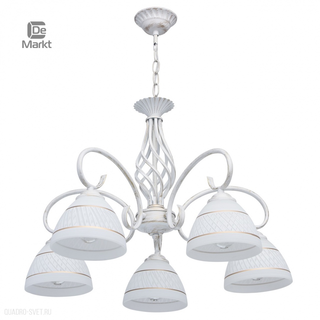Подвесная люстра 450015405 немецкого производителя DeMarkt из коллекции Ариадна выполнена в классическом стиле. Арматура светильника выполнена из металла белого цвета с золотой патиной. Поверхность арматуры матовая. Плафон изготовлен из стекла белого цвета, имеет форму колокола и матовую поверхность. Направлен в стороны и вниз. Осветительный прибор рассчитан на освещение пространства площадью 15 кв. м. Тип цоколя используемых ламп E27. Производитель рекомендует использовать лампы мощностью не более 60 Вт. Суммарная мощность светильника составляет 300 Вт. Лампочки входят в комплект. Защита от попадания влаги и пыли внутрь изделия не предусмотрена. Рекомендуем к применению в гостиной, кабинете, спальне.