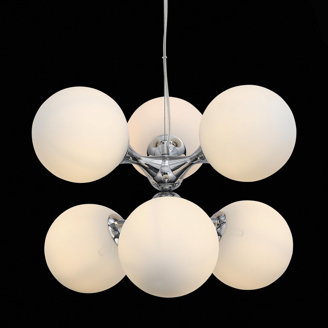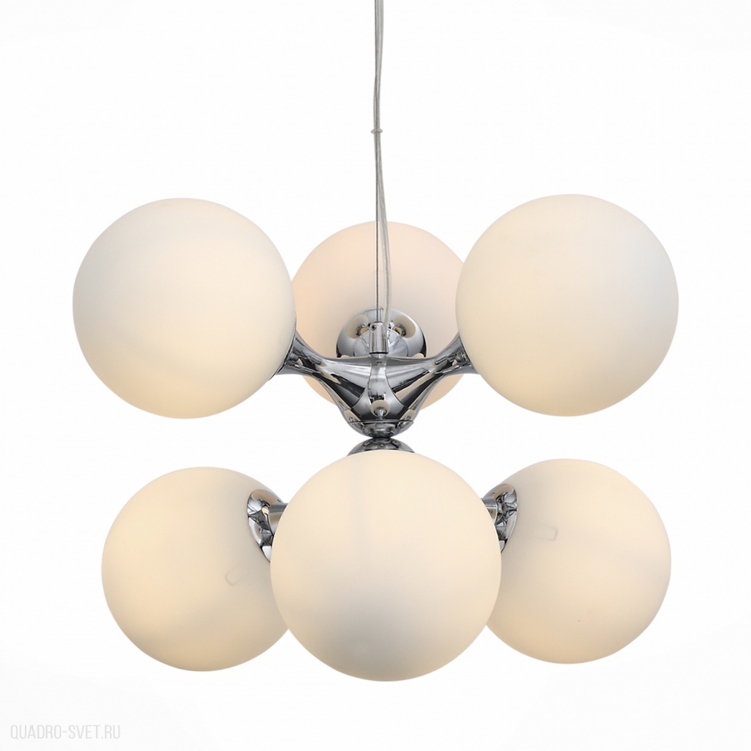 Подвесная люстра SL549.103.06 итальянского производителя ST Luce из коллекции ARTE исполнена в современном стиле. Арматура светильника выполнена из металла цвета хром. Поверхность арматуры глянцевая. Плафон изготовлен из стекла белого цвета, имеет сферическую форму и матовую поверхность. Направлен в стороны и вниз. Осветительный прибор рассчитан на освещение пространства площадью 18 кв. м. Тип цоколя используемых ламп E27. Производитель рекомендует использовать лампы мощностью не более 60 Вт. Суммарная мощность светильника составляет 360 Вт. Лампочки в комплект не входят. Защита от попадания влаги и пыли внутрь изделия не предусмотрена. Рекомендуем к применению в гостиной, кабинете, спальне.