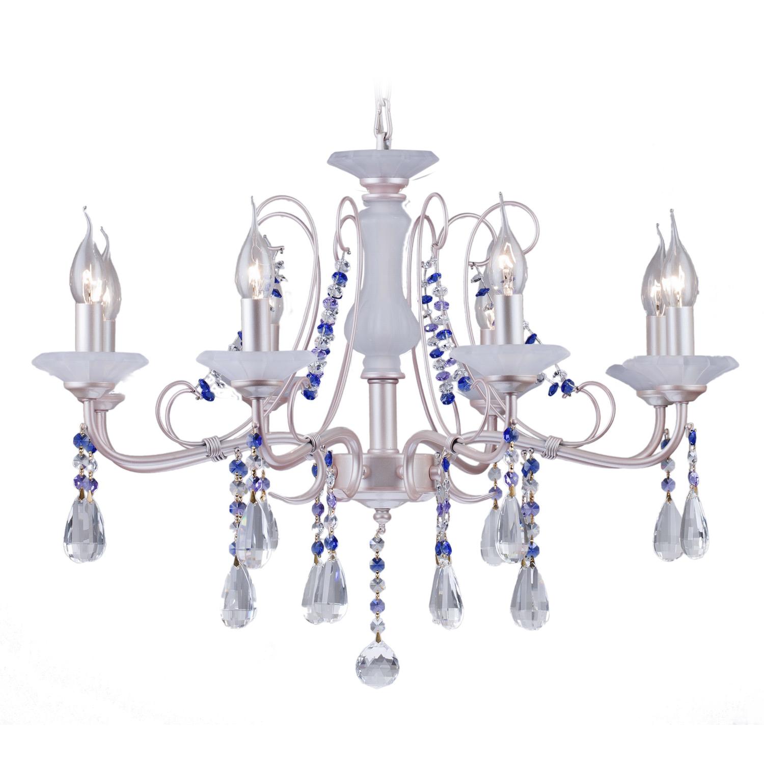 металла цвета розовое золото. Поверхность арматуры матовая. Плафон отсутствует. Декоративные элементы выполнены из прозрачного хрусталя. Осветительный прибор рассчитан на освещение пространства площадью 16 кв. м. Тип цоколя используемых ламп E14. Производитель рекомендует использовать лампы мощностью не более 40 Вт. Суммарная мощность светильника составляет 320 Вт. Лампочки в комплект не входят. Защита от попадания влаги и пыли внутрь изделия не предусмотрена. Рекомендуем к применению в гостиной, кабинете, спальне.