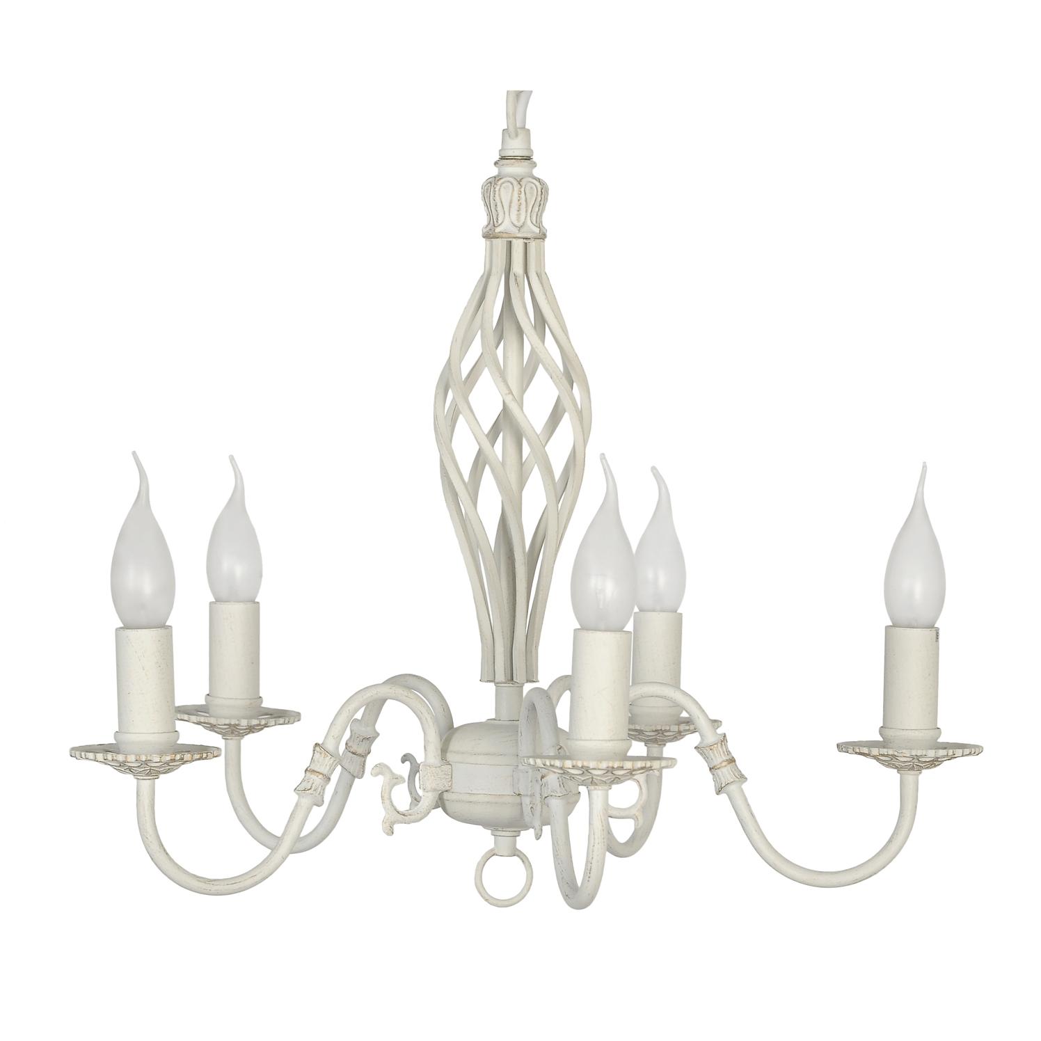 металла кремового цвета. Поверхность арматуры глянцевая. Плафон отсутствует. Осветительный прибор рассчитан на освещение пространства площадью 10 кв. м. Тип цоколя используемых ламп E14. Производитель рекомендует использовать лампы мощностью не более 40 Вт. Суммарная мощность светильника составляет 200 Вт. Лампочки в комплект не входят. Защита от попадания влаги и пыли внутрь изделия не предусмотрена. Рекомендуем к применению в гостиной, кабинете, спальне.