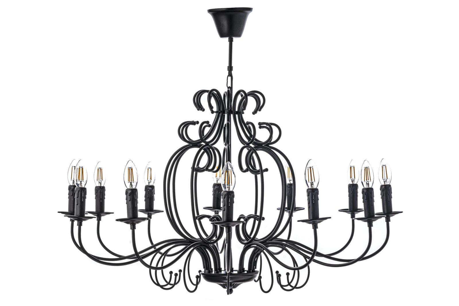 металла черного цвета. Поверхность арматуры глянцево-матовая. Плафон отсутствует. Осветительный прибор рассчитан на освещение пространства площадью 24 кв. м. Тип цоколя используемых ламп E14. Производитель рекомендует использовать лампы мощностью не более 40 Вт. Суммарная мощность светильника составляет 480 Вт. Лампочки в комплект не входят. Защита от попадания влаги и пыли внутрь изделия не предусмотрена. Рекомендуем к применению в гостиной, кабинете, спальне.
