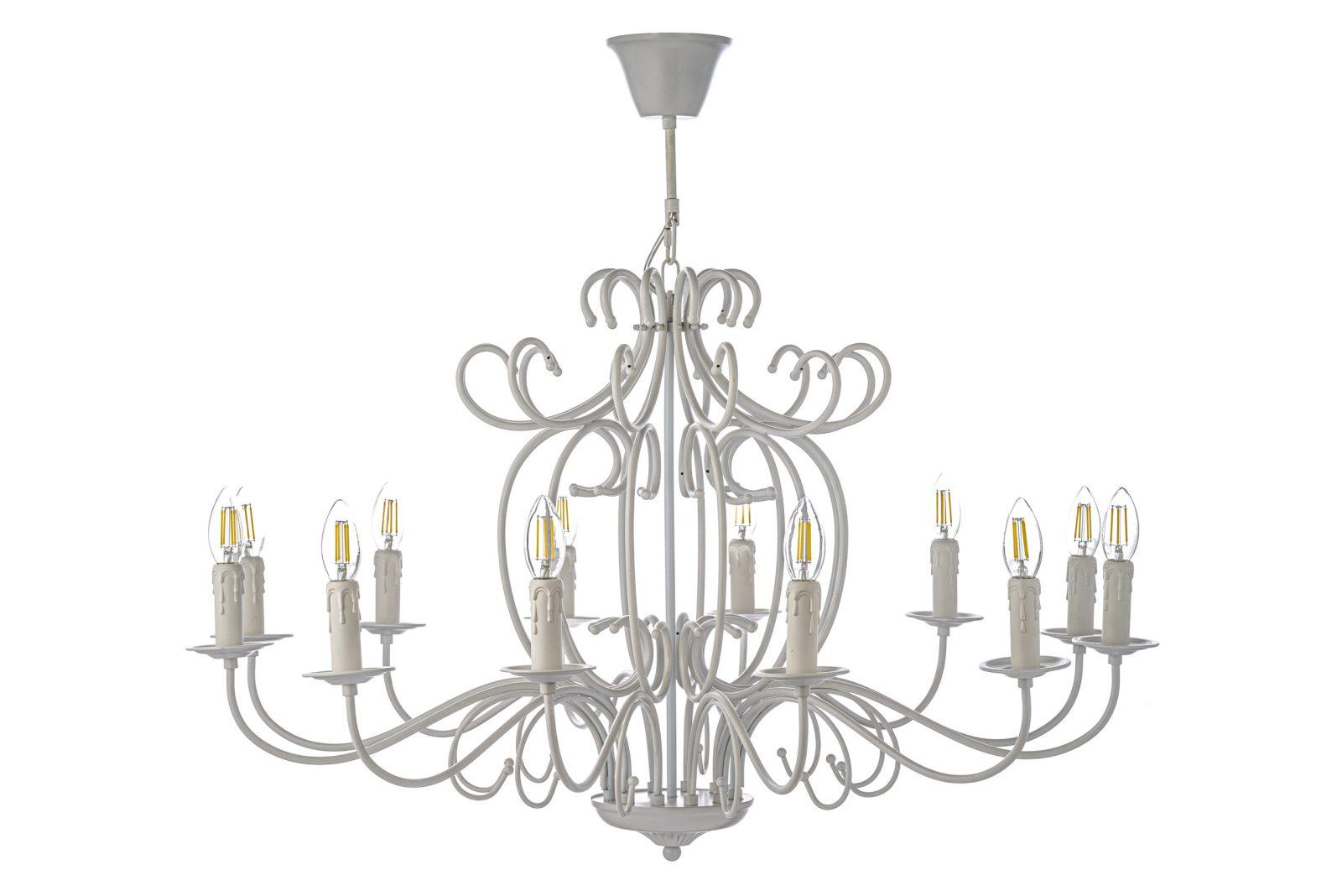металла белого цвета. Поверхность арматуры глянцево-матовая. Плафон отсутствует. Осветительный прибор рассчитан на освещение пространства площадью 24 кв. м. Тип цоколя используемых ламп E14. Производитель рекомендует использовать лампы мощностью не более 40 Вт. Суммарная мощность светильника составляет 480 Вт. Лампочки в комплект не входят. Защита от попадания влаги и пыли внутрь изделия не предусмотрена. Рекомендуем к применению в гостиной, кабинете, спальне.