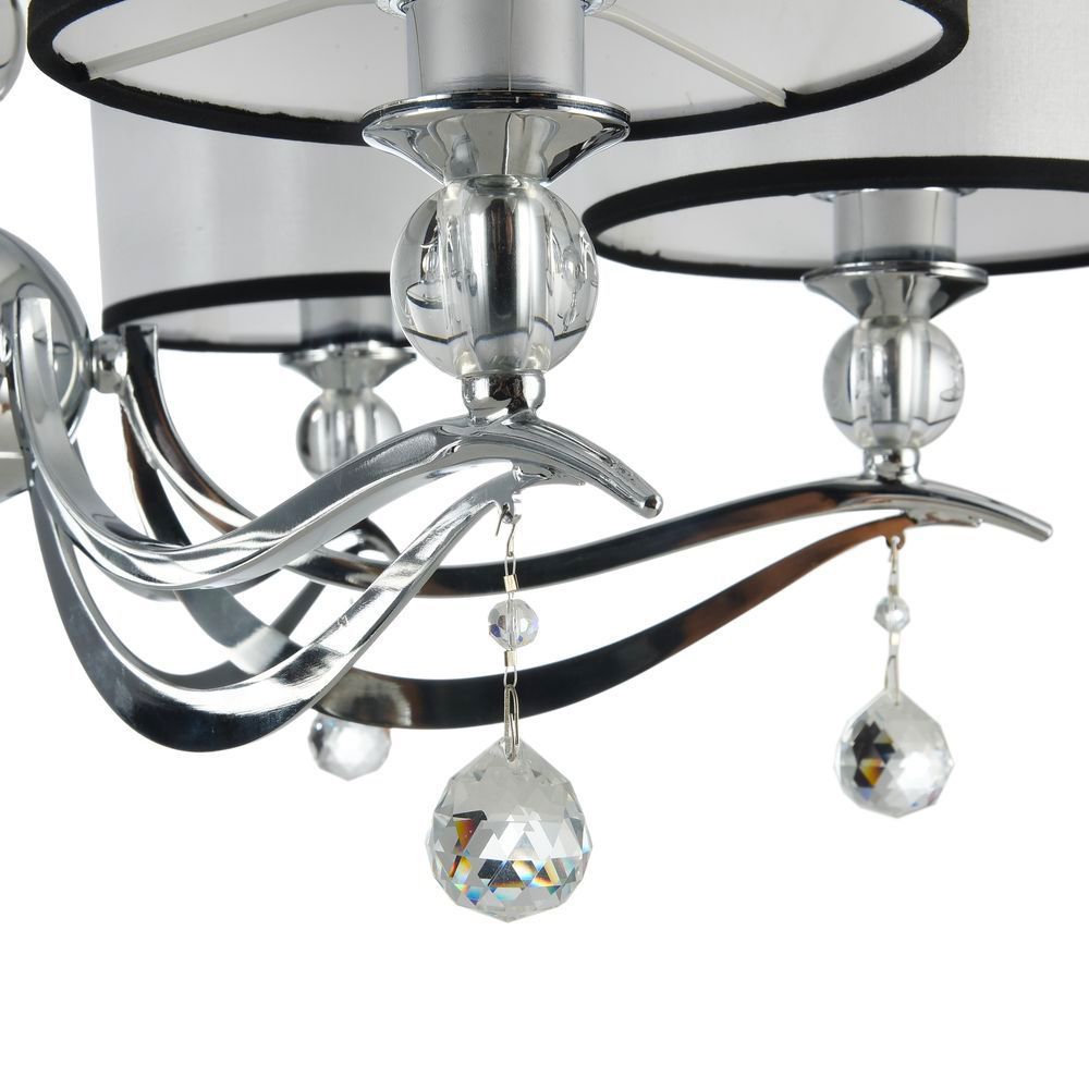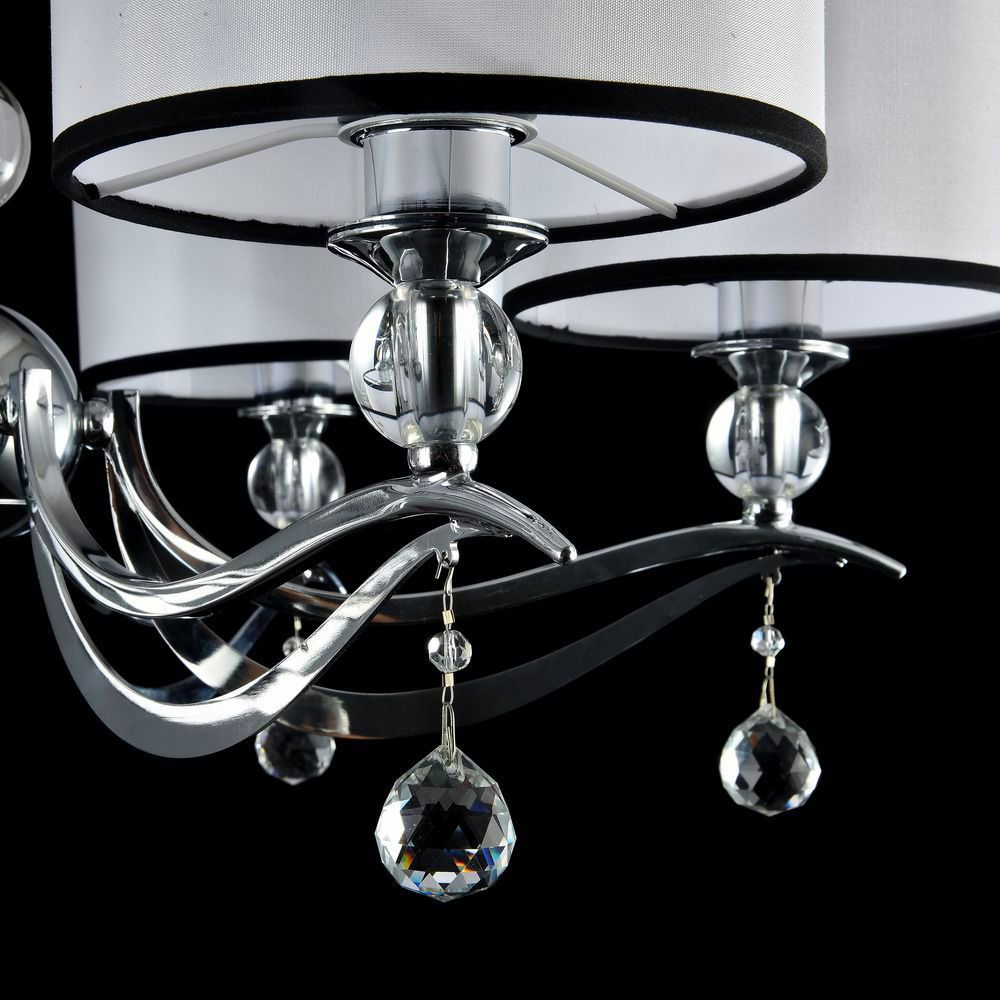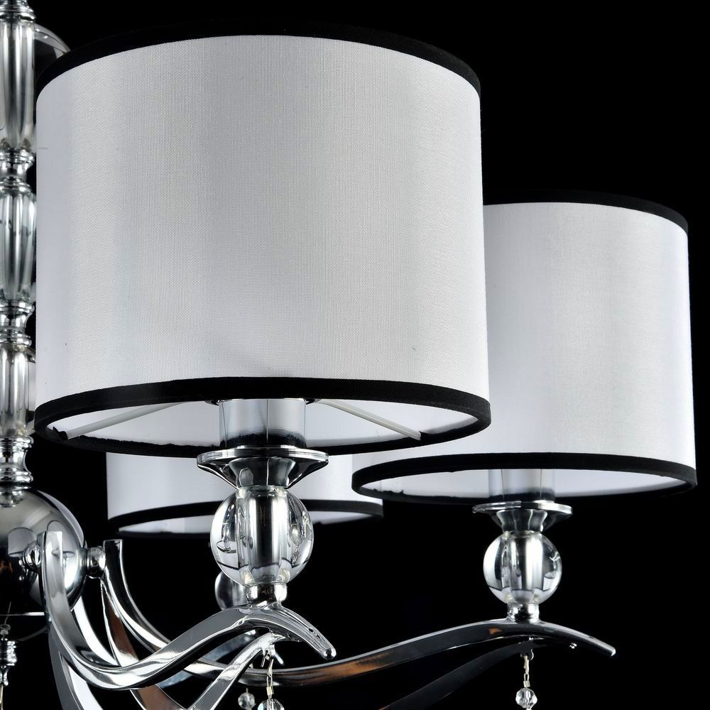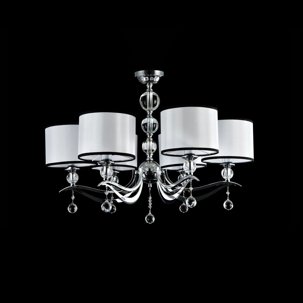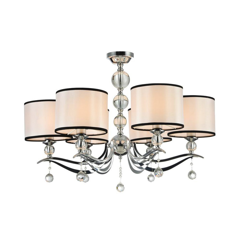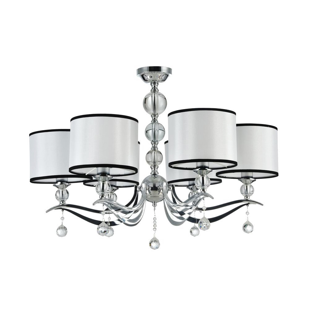 Подвесная люстра MOD269-PL-06-CH производства Maytoni (Германия) из коллекции Terra выполнена в стиле модерн. Арматура светильника выполнена из металла и стекла цвета хром. Поверхность арматуры глянцевая, прозрачная. Плафон изготовлен из текстиля и ПВХ белого цвета с черной каймой, имеет цилиндрическую форму и матовую поверхность. Направлен вверх и вниз. Осветительный прибор рассчитан на освещение пространства площадью 12 кв. м. Тип цоколя используемых ламп E14. Производитель рекомендует использовать лампы мощностью не более 40 Вт. Суммарная мощность светильника составляет 240 Вт. Лампочки в комплект не входят. Защита от попадания влаги и пыли внутрь изделия не предусмотрена. Рекомендуем к применению в гостиной, кабинете, спальне.