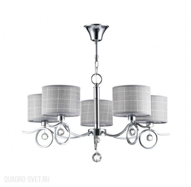 Подвесная люстра FR5906-PL-05-CH производства Freya (Германия) из коллекции Bertrand выполнена в стиле модерн. Арматура светильника выполнена из металла цвета хром. Поверхность арматуры глянцевая. Плафон изготовлен из хлопка серого цвета, имеет цилиндрическую форму и матовую поверхность. Направлен вверх и вниз. Декоративные элементы выполнены из прозрачного хрусталя.Осветительный прибор рассчитан на освещение пространства площадью 10 кв. м. Тип цоколя используемых ламп E14. Производитель рекомендует использовать лампы мощностью не более 40 Вт. Суммарная мощность светильника составляет 200 Вт. Лампочки в комплект не входят. Защита от попадания влаги и пыли внутрь изделия не предусмотрена. Рекомендуем к применению в гостиной, кабинете, спальне.