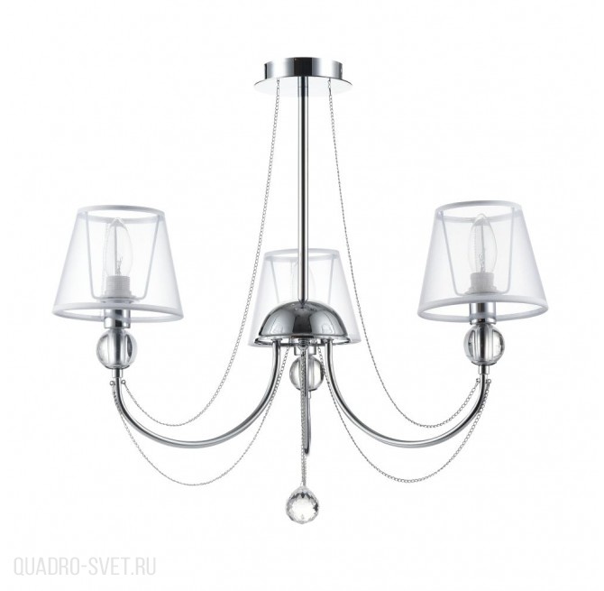 Подвесная люстра FR5661-PL-03-CH производства Freya (Германия) из коллекции Beverly выполнена в стиле модерн. Арматура светильника выполнена из металла цвета хром. Поверхность арматуры глянцевая. Плафон изготовлен из органзы и ПВХ прозрачного цвета, имеет конусную форму и прозрачную поверхность. Направлен вверх и вниз. Декоративные элементы выполнены из прозрачного хрусталя.Осветительный прибор рассчитан на освещение пространства площадью 6 кв. м. Тип цоколя используемых ламп E14. Производитель рекомендует использовать лампы мощностью не более 40 Вт. Суммарная мощность светильника составляет 120 Вт. Лампочки в комплект не входят. Защита от попадания влаги и пыли внутрь изделия не предусмотрена. Рекомендуем к применению в гостиной, кабинете, спальне.