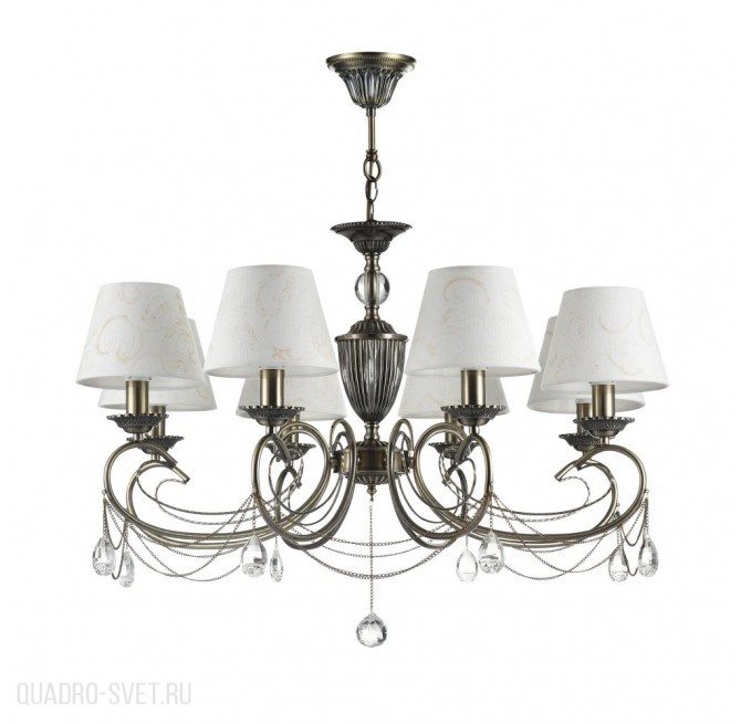Подвесная люстра FR2904-PL-08-BZ производства Freya (Германия) из коллекции Brossard выполнена в стиле классика. Арматура светильника выполнена из металла бронзового цвета. Поверхность арматуры матовая. Плафон изготовлен из хлопка белого цвета с золотистым рисунком, имеет конусную форму и матовую поверхность. Направлен вверх и вниз. Декоративные элементы выполнены из прозрачного хрусталя.Осветительный прибор рассчитан на освещение пространства площадью 16 кв. м. Тип цоколя используемых ламп E14. Производитель рекомендует использовать лампы мощностью не более 40 Вт. Суммарная мощность светильника составляет 320 Вт. Лампочки в комплект не входят. Защита от попадания влаги и пыли внутрь изделия не предусмотрена. Рекомендуем к применению в гостиной, кабинете, спальне.