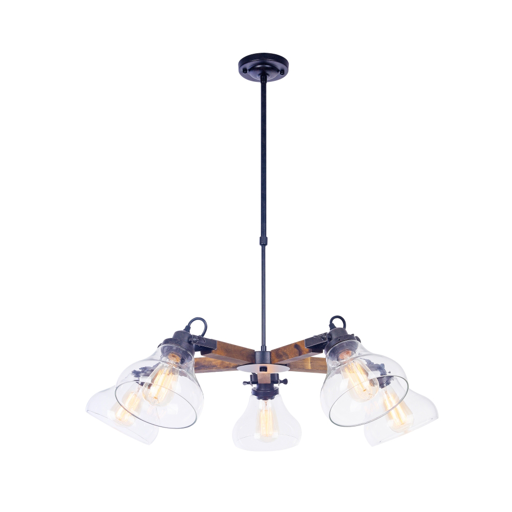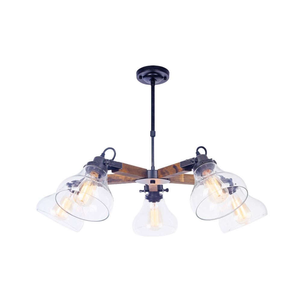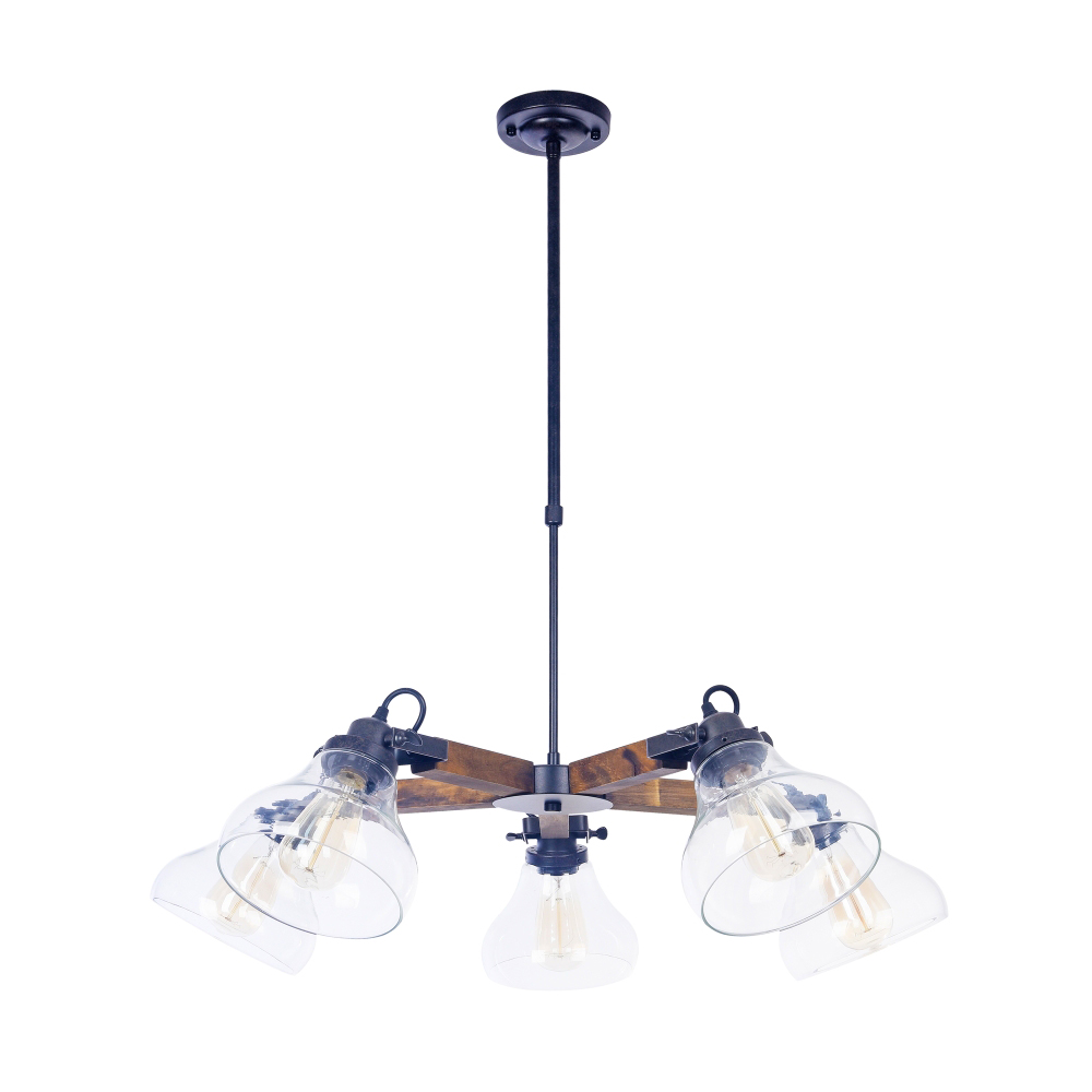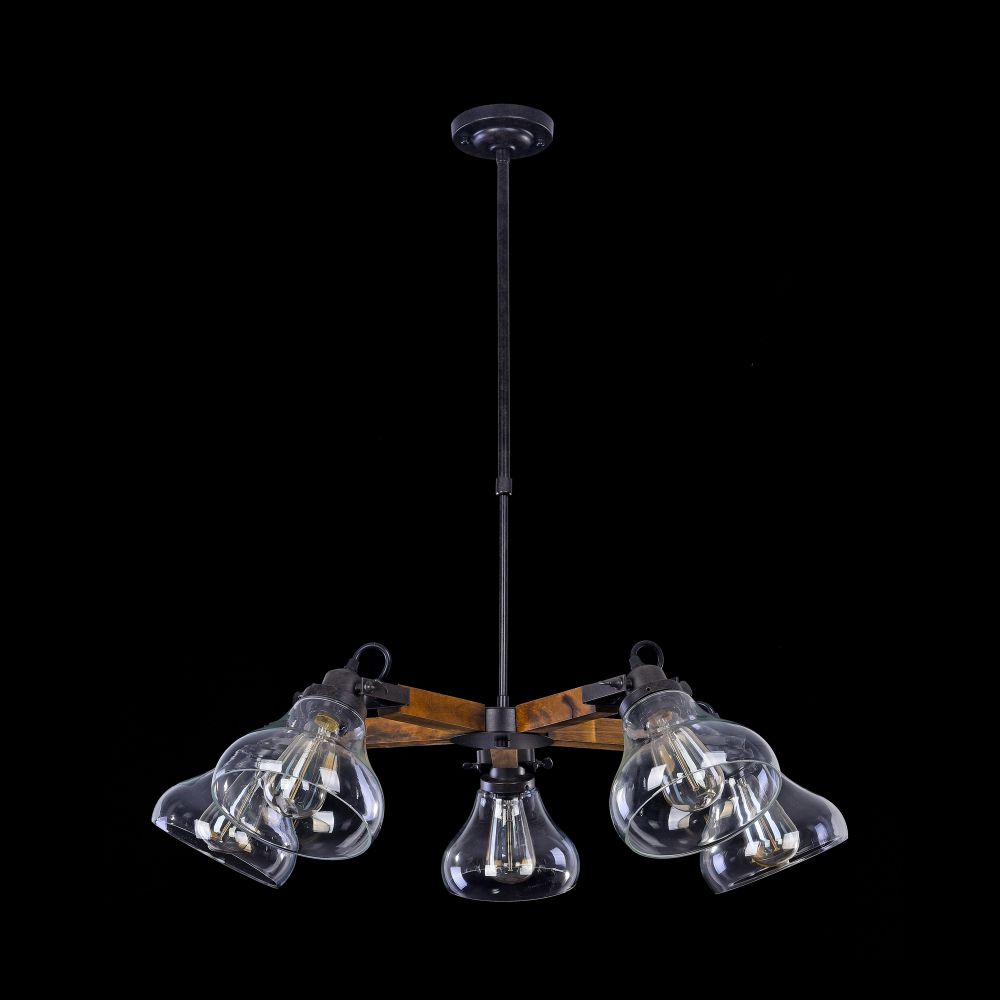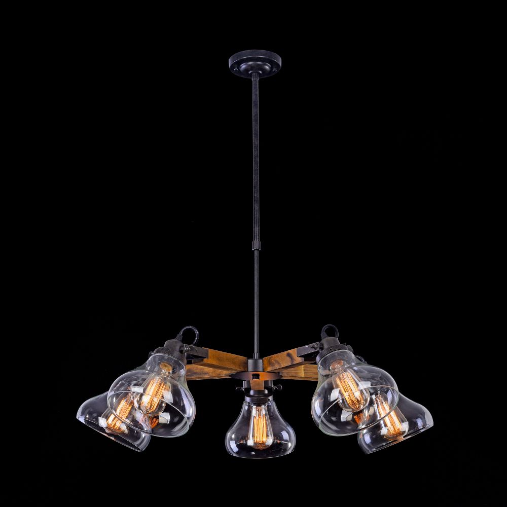 Подвесная люстра FR4171-PL-05-B производства Freya (Германия) из коллекции Lorenza выполнена в стиле лофт. Арматура светильника выполнена из дерева и металла черного цвета. Поверхность арматуры матовая. Плафон изготовлен из стекла прозрачного цвета, имеет форму колокола и прозрачную поверхность. Направлен в стороны и вниз. Осветительный прибор рассчитан на освещение пространства площадью 15 кв. м. Тип цоколя используемых ламп E27. Производитель рекомендует использовать лампы мощностью не более 60 Вт. Суммарная мощность светильника составляет 300 Вт. Лампочки в комплект не входят. Защита от попадания влаги и пыли внутрь изделия не предусмотрена. Рекомендуем к применению в гостиной, кабинете, спальне.