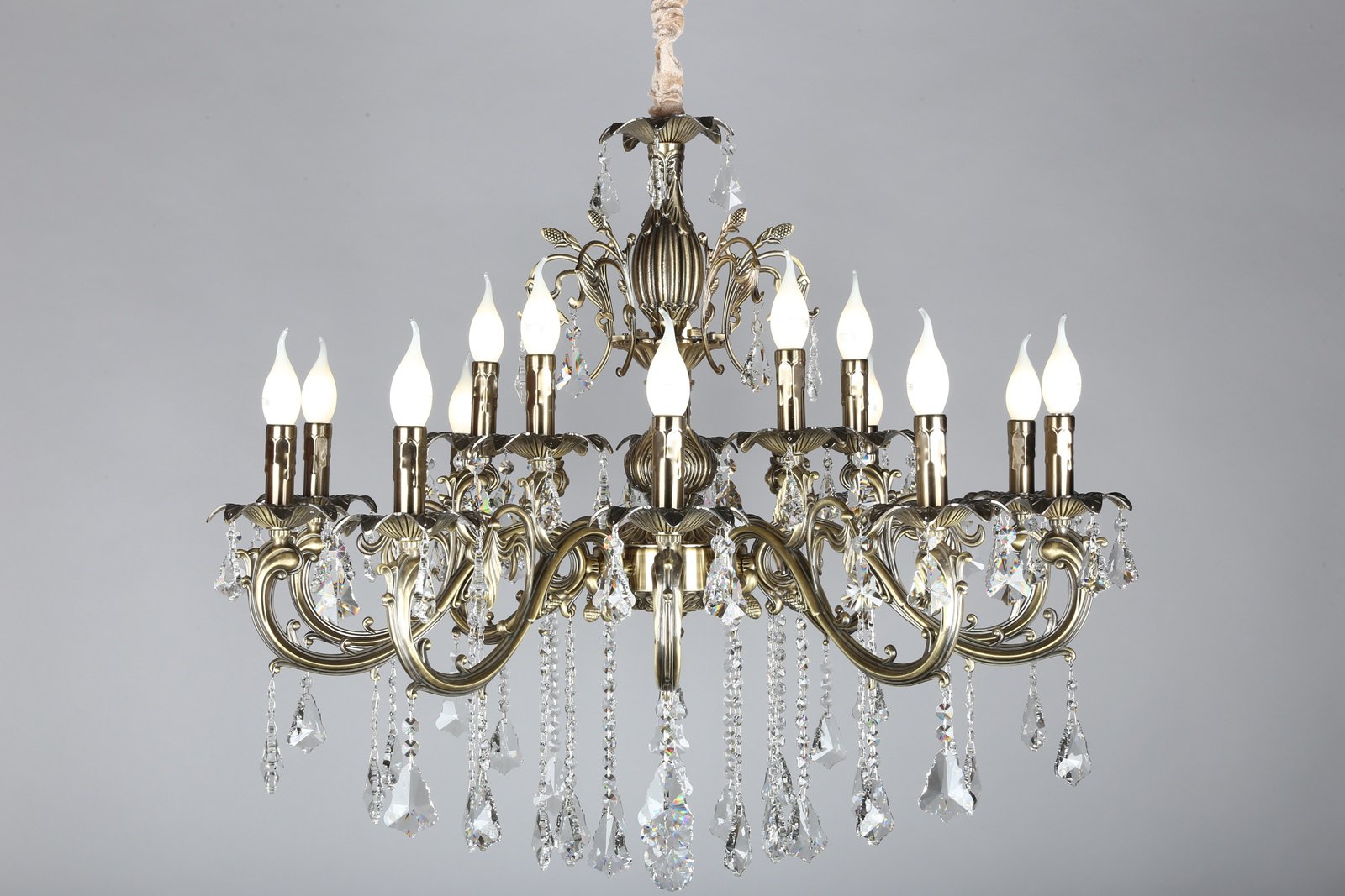Подвесная люстра OML-30813-15 от производителя Omnilux (КНР) из коллекции Catanzaro исполнена в классическом стиле. Арматура светильника выполнена из
