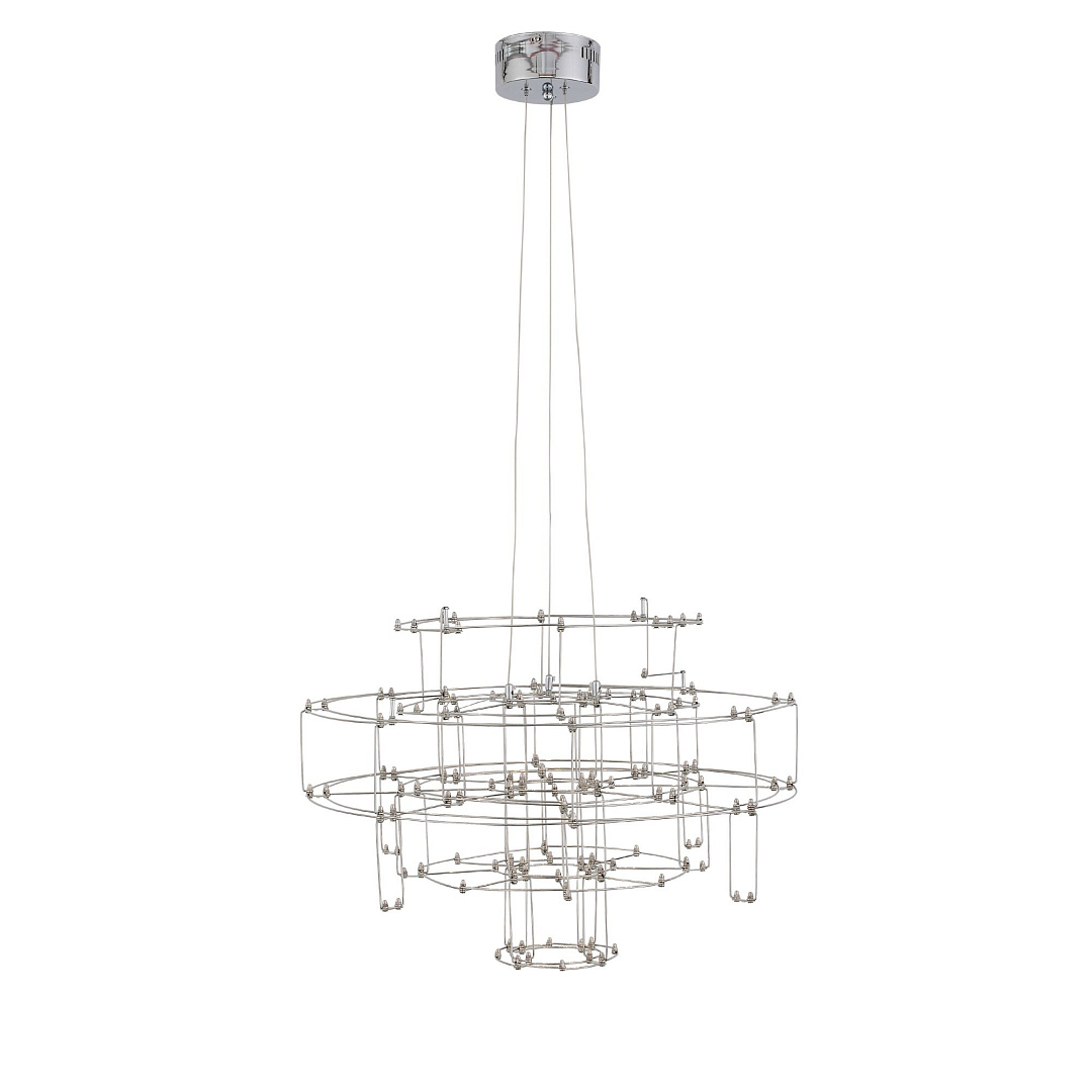 Подвесная светодиодная люстра SL798.103.64 итальянского производителя ST Luce из коллекции GENETICA исполнена в современном стиле. Арматура светильника выполнена из металла цвета хром. Поверхность арматуры глянцевая. Плафон изготовлен из металла цвета хром. с глянцевой поверхностью. Осветительный прибор рассчитан на освещение пространства площадью 6 кв. м. Тип цоколя используемых ламп LED. Производитель рекомендует использовать лампы мощностью не более 0,2 Вт. Суммарная мощность светильника составляет 13 Вт. Лампочки входят в комплект. Защита от попадания влаги и пыли внутрь изделия не предусмотрена. Цвет свечения теплый белый (3200K). Рекомендуем к применению в гостиной, кабинете, спальне.