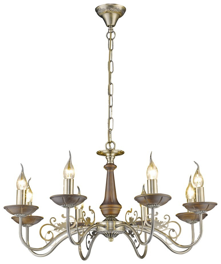 Подвесная люстра 307-503-08 итальянского производителя Velante из коллекции 307 исполнена в классическом стиле. Арматура светильника выполнена из металла и дерева цветов бронза и дуб. Поверхность арматуры глянцевая. Плафон отсутствует. Осветительный прибор рассчитан на освещение пространства площадью 24 кв. м. Тип цоколя используемых ламп E14. Производитель рекомендует использовать лампы мощностью не более 60 Вт. Суммарная мощность светильника составляет 480 Вт. Лампочки в комплект не входят. Защита от попадания влаги и пыли внутрь изделия не предусмотрена. Рекомендуем к применению в гостиной, спальне.